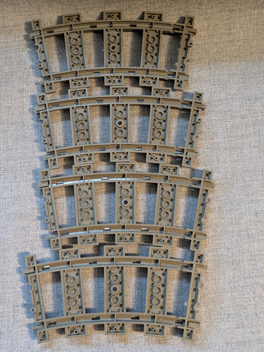 - Lot of 4 Lego Electric Train Tracks 9V Curve Metal Dark Gray 2867