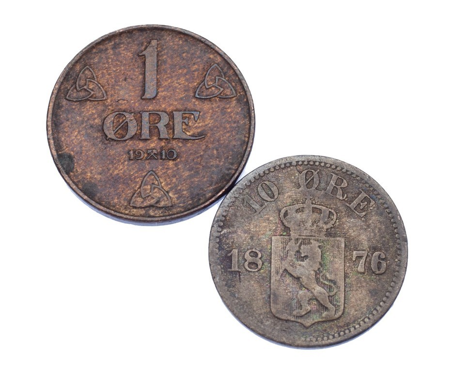 - Lot of 5 Norway Coins 1876 - 1910 1 Ore - 10 Ore Various Conditions