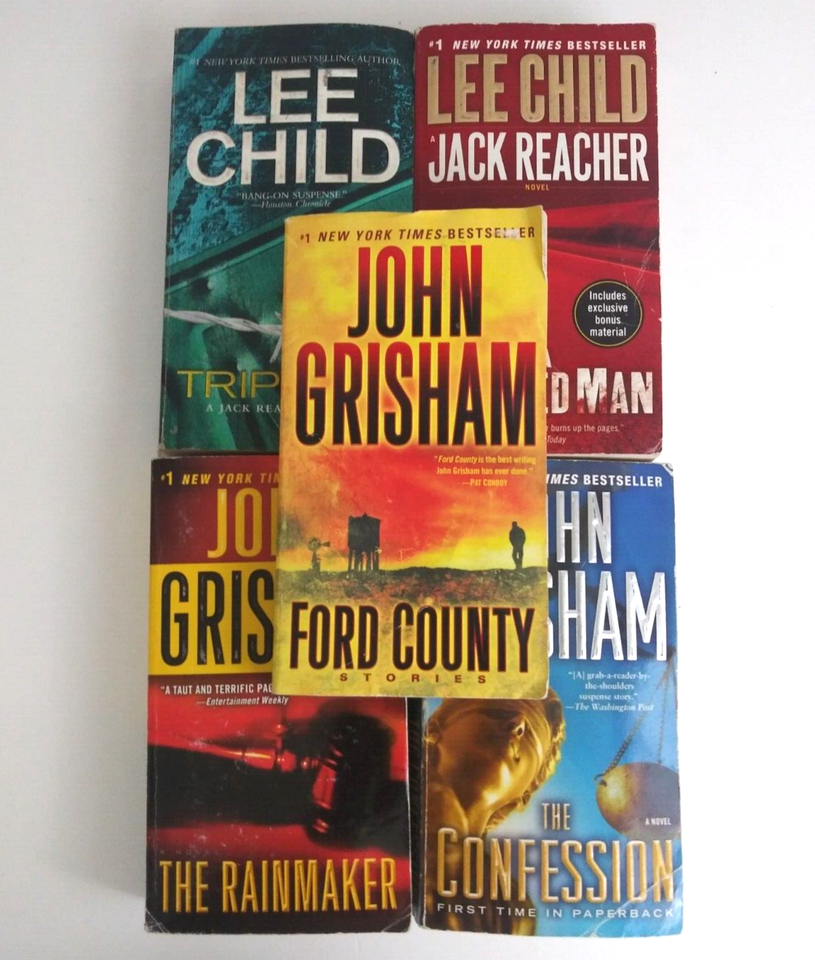 - Lot of 5 Paperback Mystery Thriller Novels 3 John Grisham & 2 Lee Child