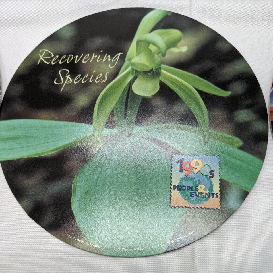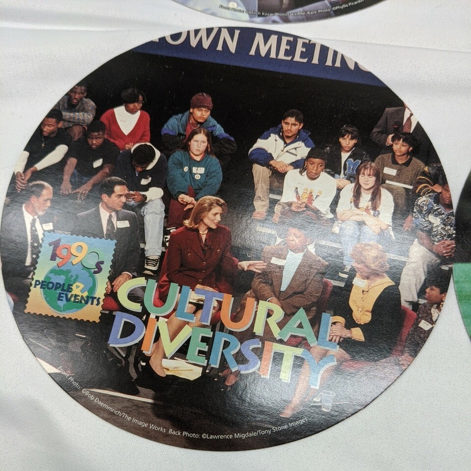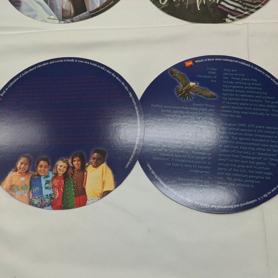 Lot of (6) 1990s People And Event Circular Cardboard Collectables With Fun Facts