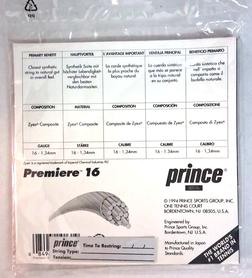 - Lot of 6 Prince Premiere 16 Extra Playability Tennis Racquet String 16 Gauge 38'