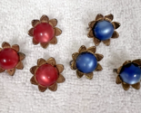 - Lot of 6 Vintage Flower Buttons Gold Tone Metal w Spun Nylon Pink Blue 1" wide