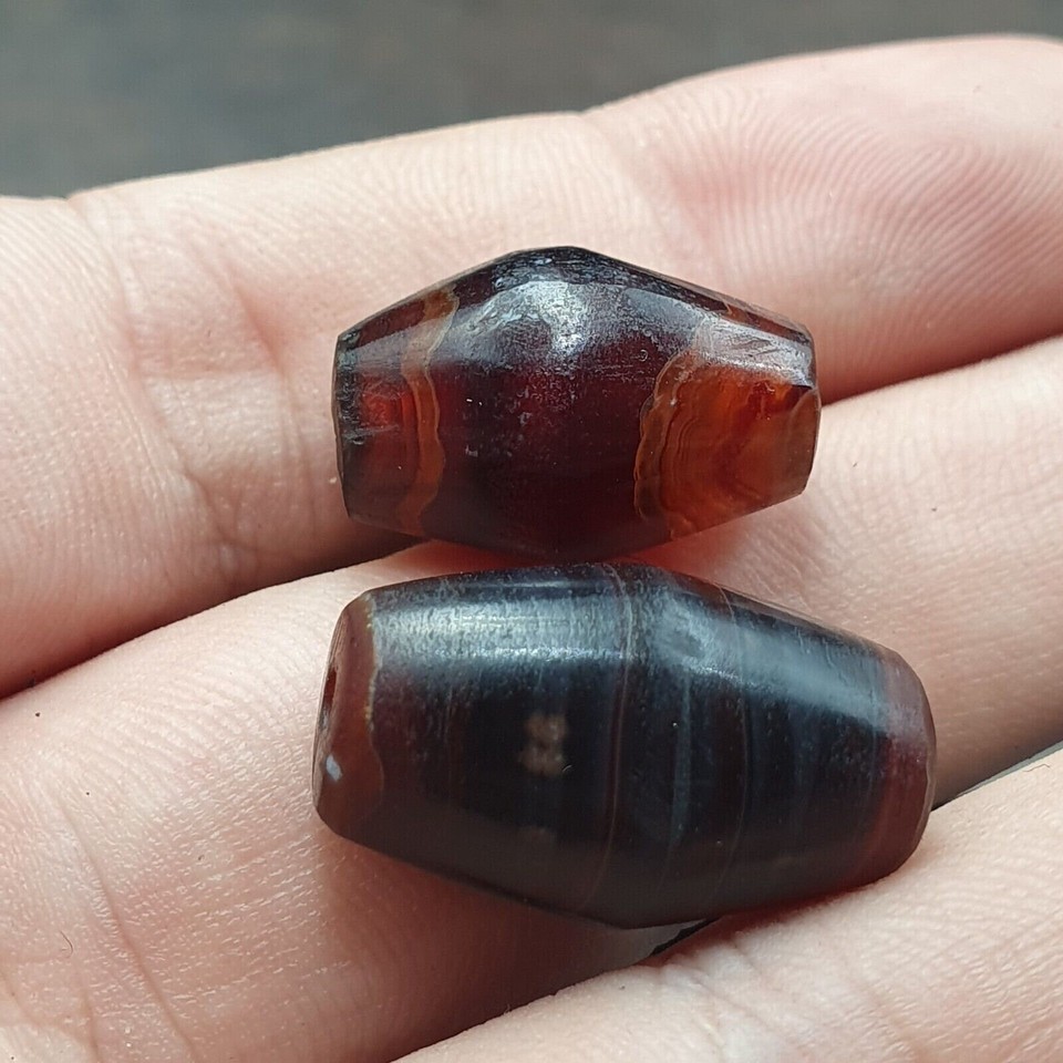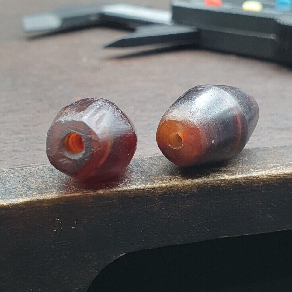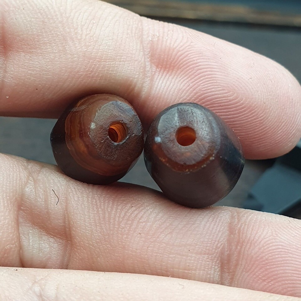 - Lote 2 amuleto de ágata natural de Oriente Medio comercio antiguo yemení