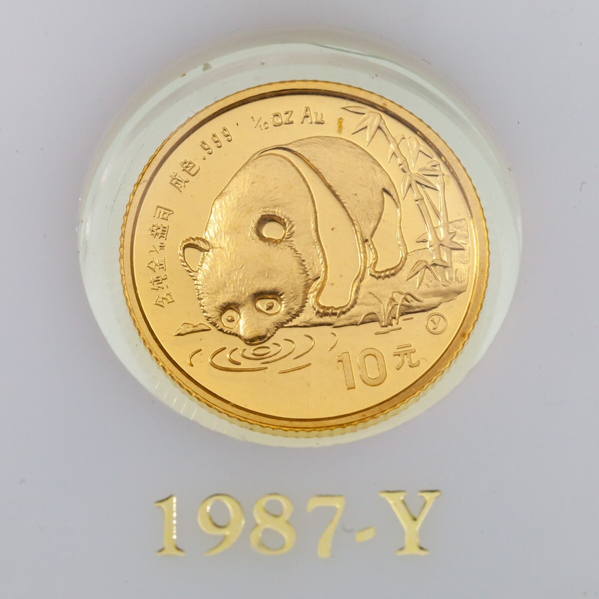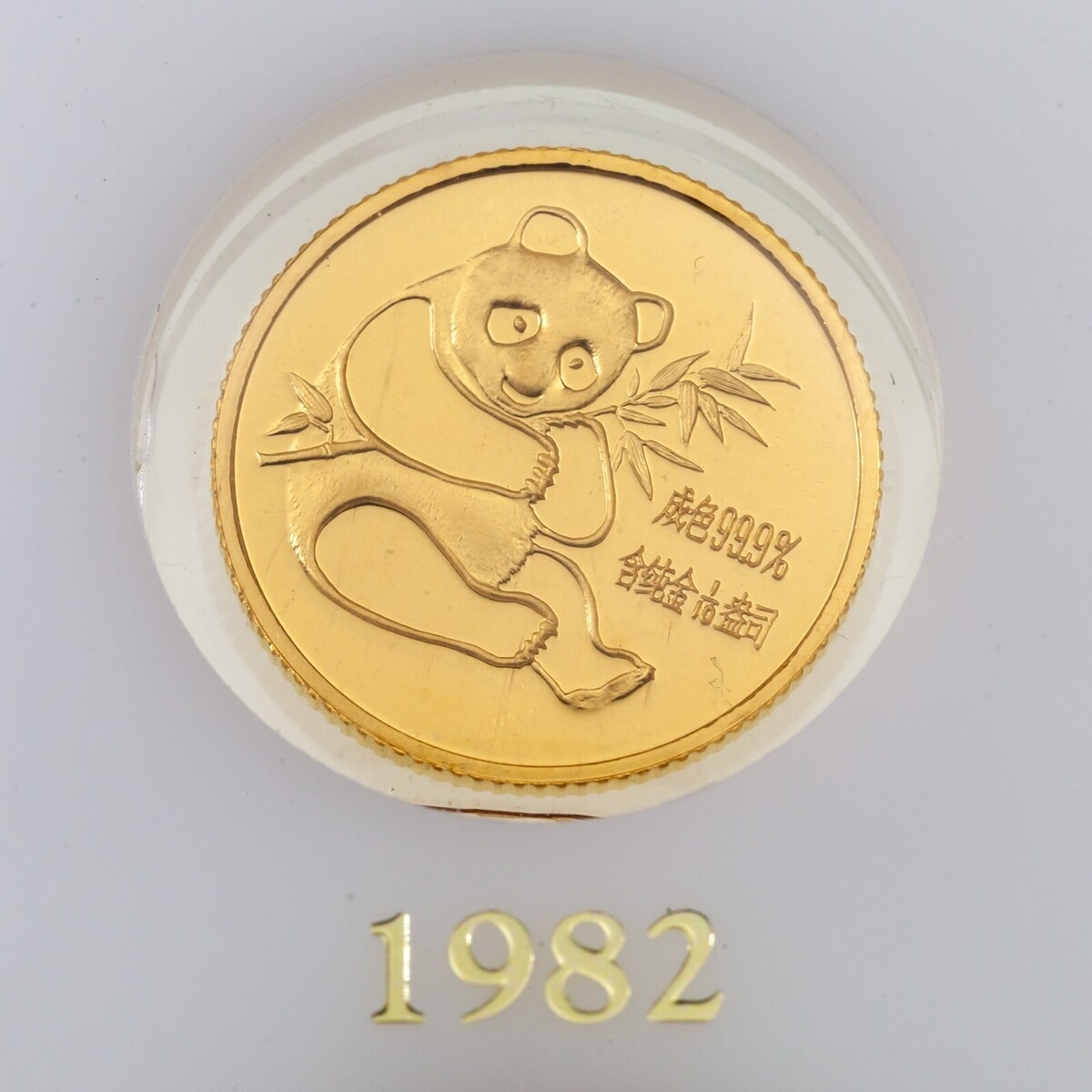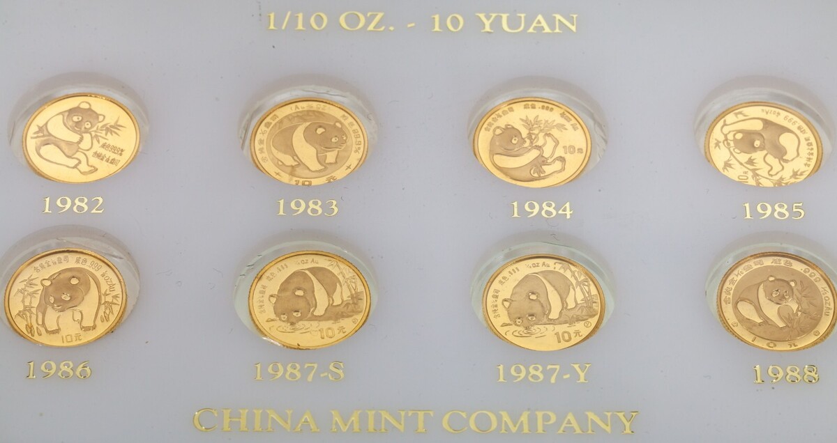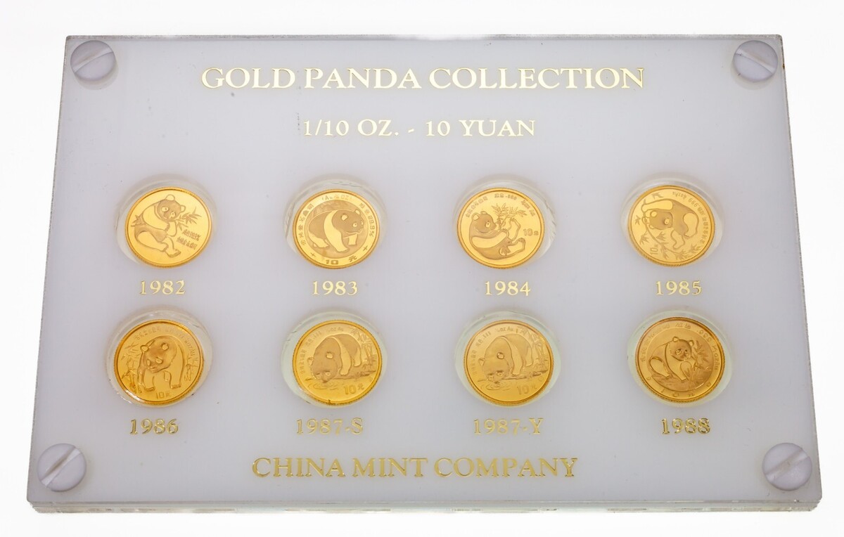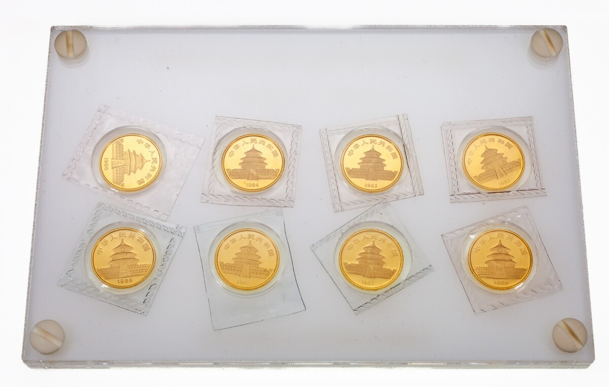 - Lote De 8 1/10 Oz. Oro Pandas China Mint Company 1982-1988 IN Caja