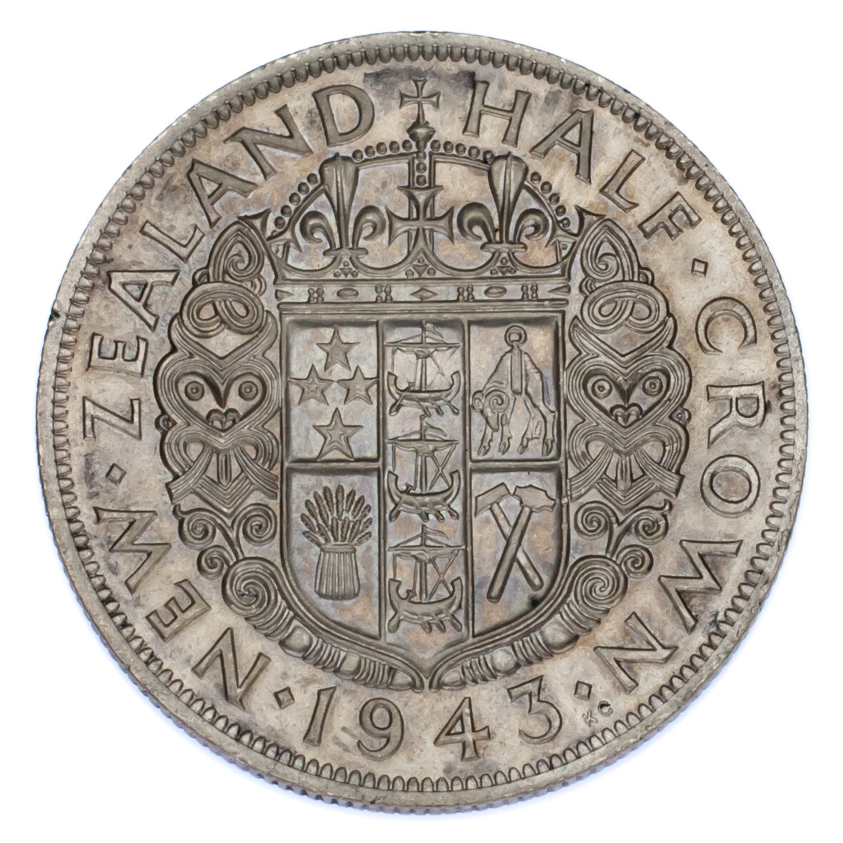 1942 Nuova Zelanda Argento 1/2 Corona IN Au Condizioni Km #11