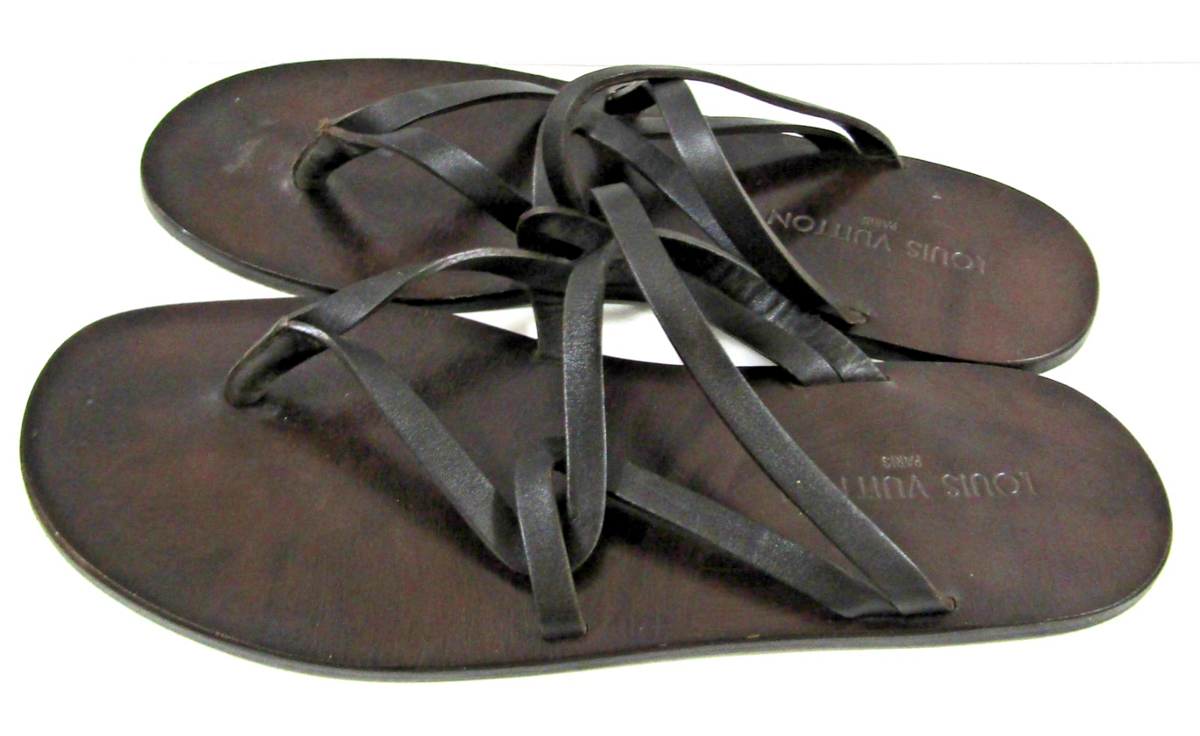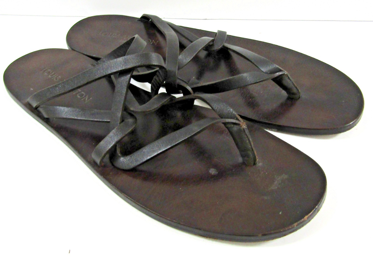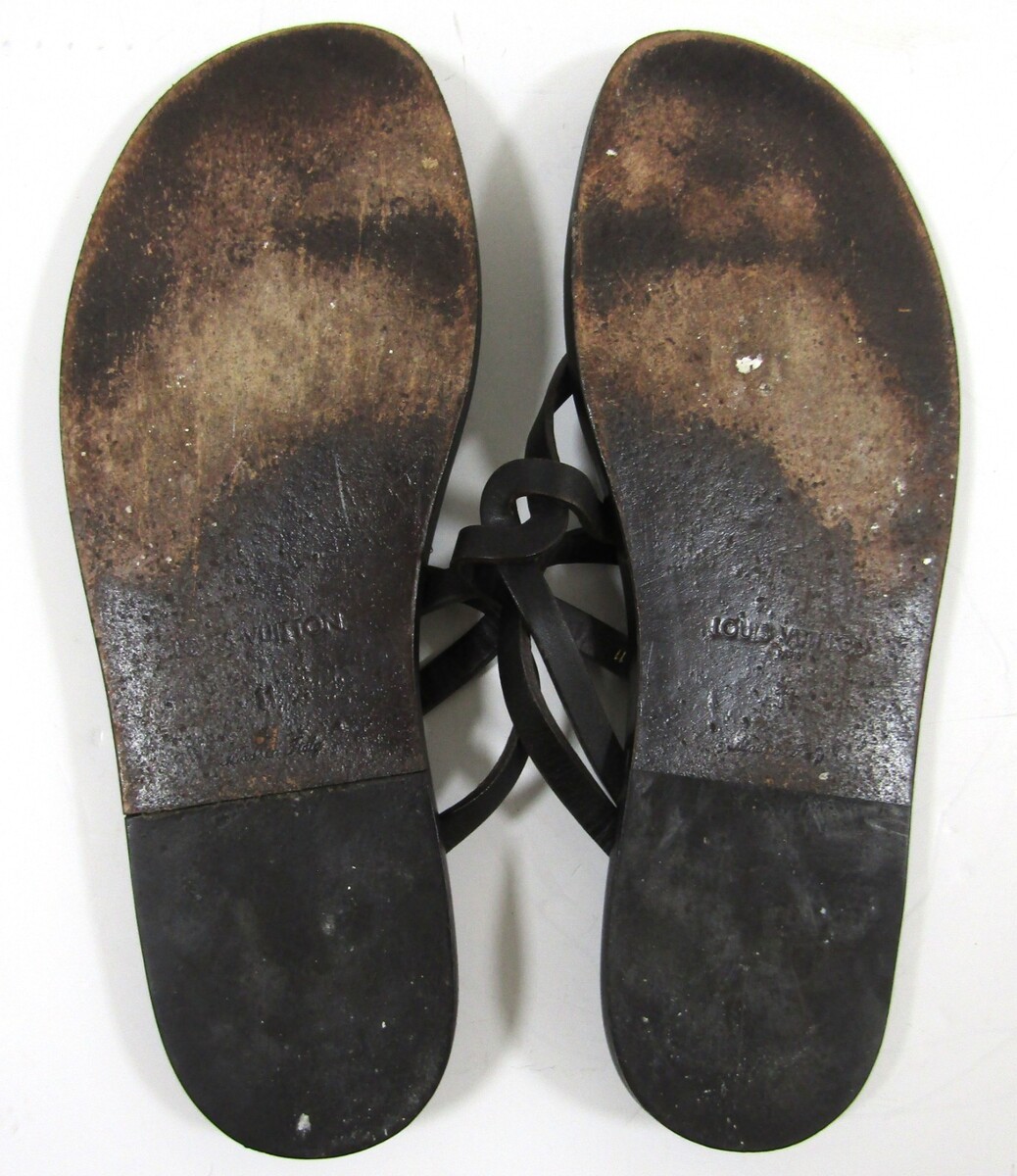 - Louis Vuitton Men's Black Leather Gladiator Thong Sandals Size 11