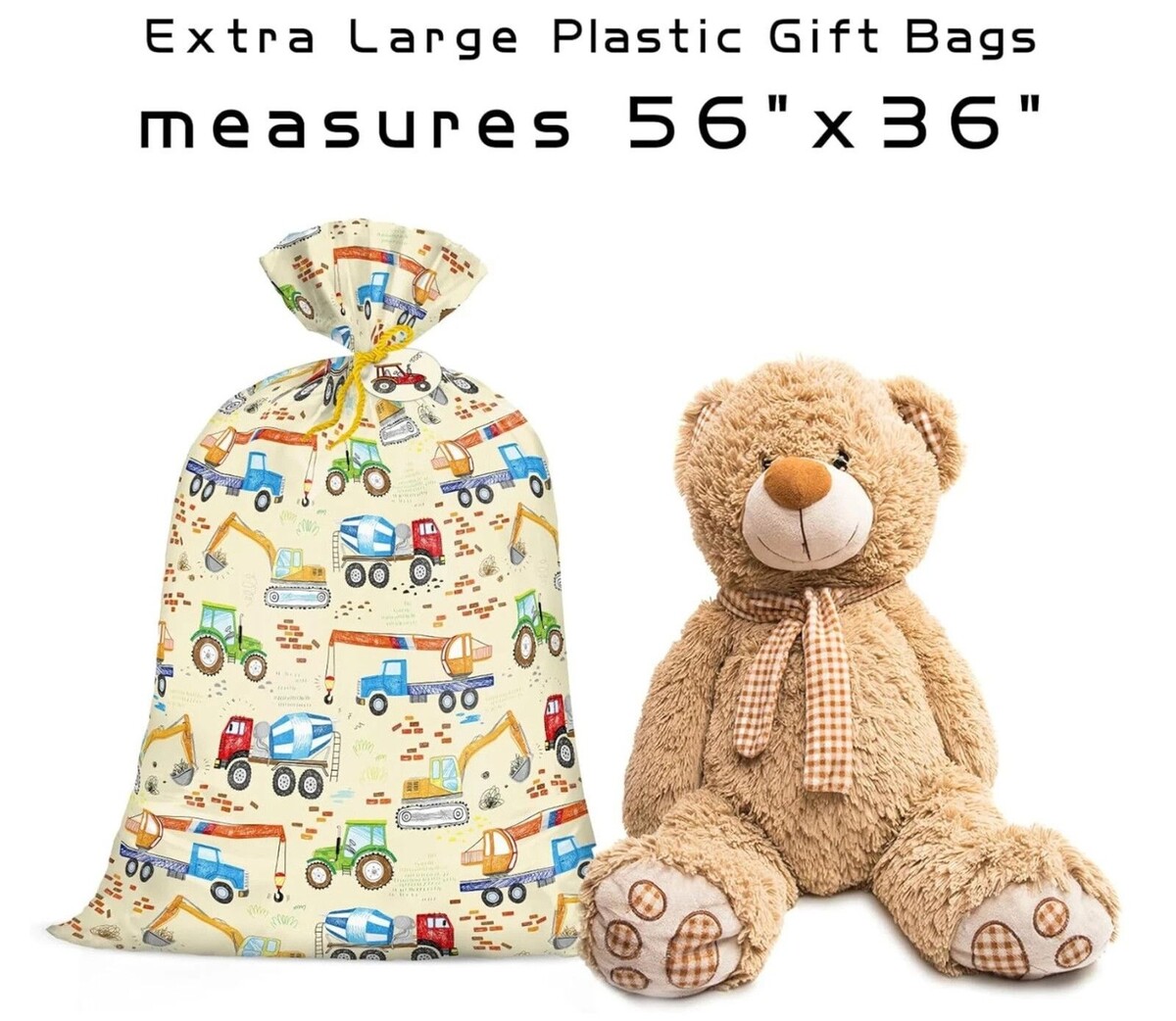 - Loveinside X-Large Plastic Gift Bag Construction Trucks 56 x 36-in Gift Tag NEW