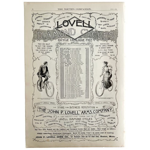 Lovell Arms Diamond Bicycles 1894 Advertisement Victorian XL Bikes DWII9