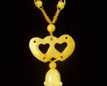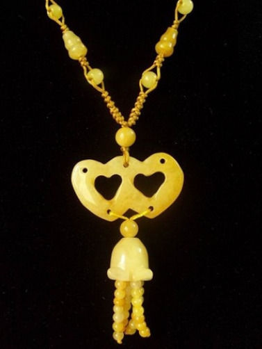- Lovely Yellow Jade Orchid Flower Beaded Fringe 2 Overlapped Love Heart Necklace