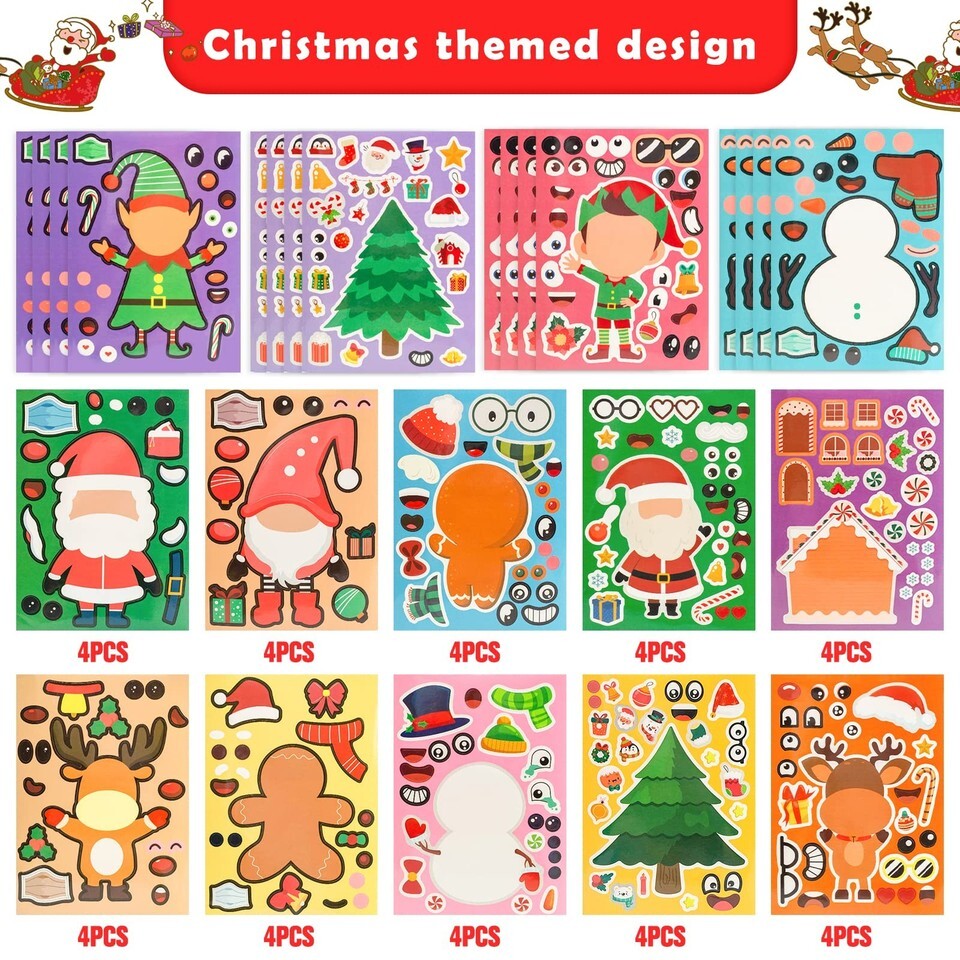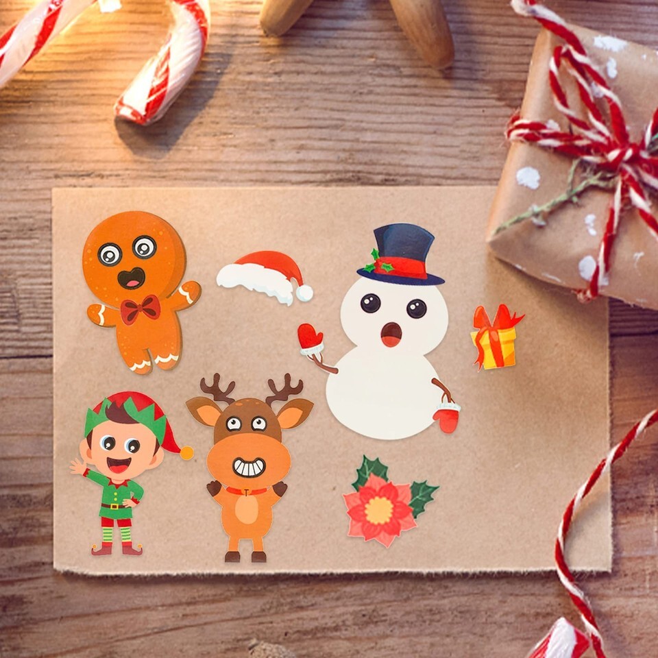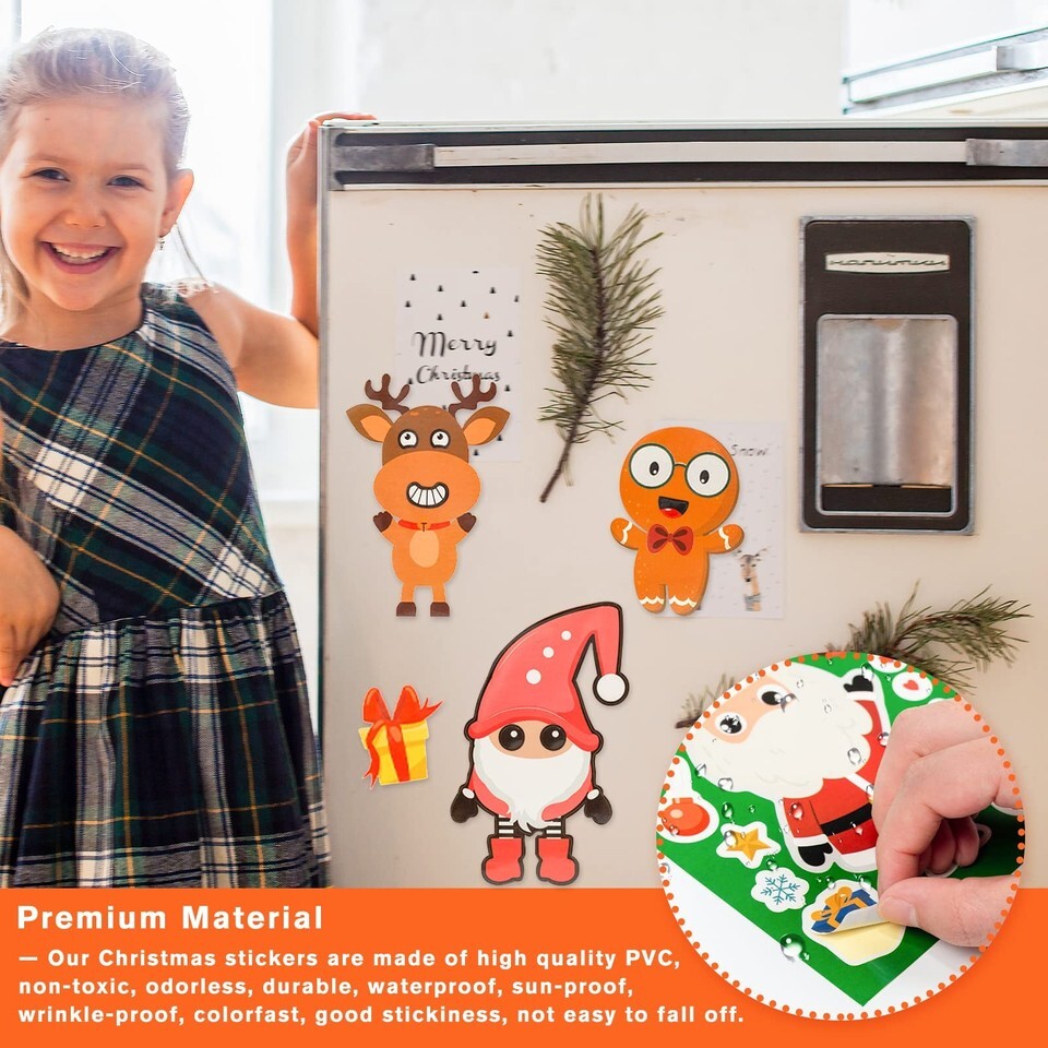 LovesTown 56PCS Christmas Stickers, Waterproof Christmas Make a Face Stickers Christmas Patterns Sticker Toys for Kids Party Favors Christmas Activities