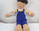 - Lovevery Quinn plush doll Curly Hair Gender Neutral Blue Overalls Montessori