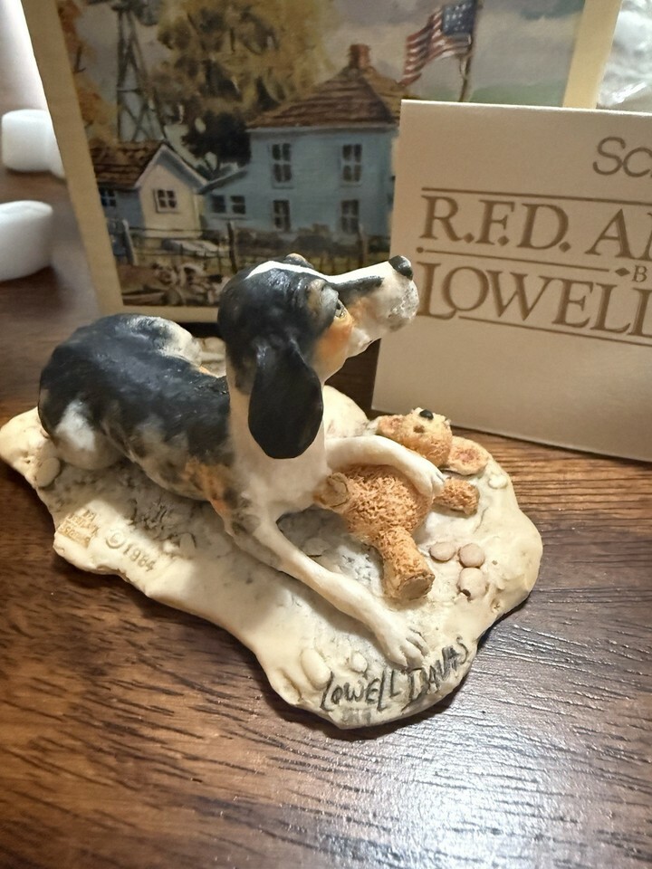 - LOWELL DAVIS RFD AMERICA COLLECTION 'OZARK BELLE' BEAGLE & TEDDY BEAR FIGURINE