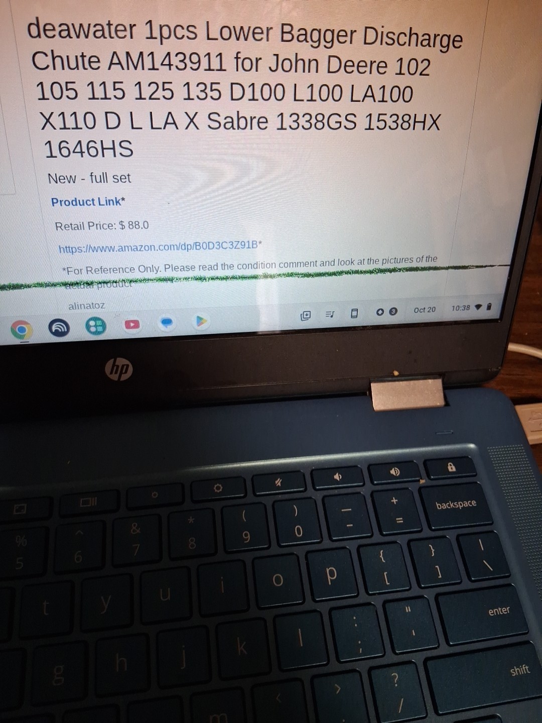 - Lower Bagger Chute For John Deere D110 D120 D125 D130 E100 E110 E120 AM143911