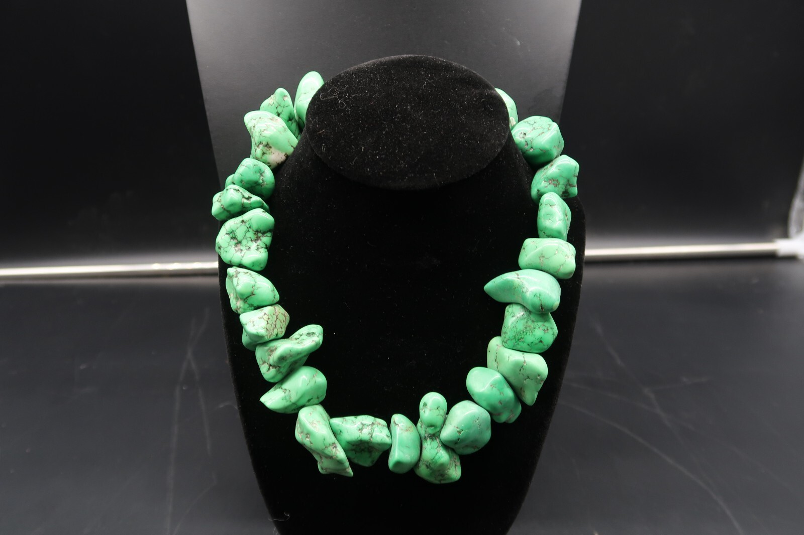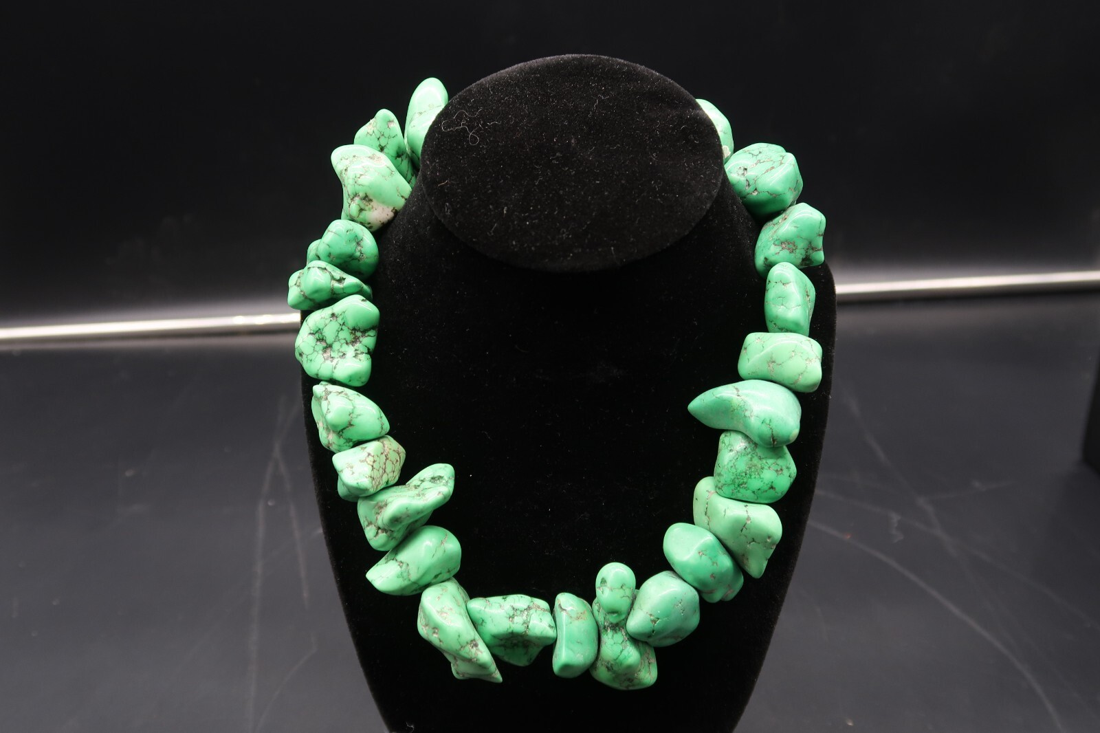 - Lt Green Mint Turquoise Statement Necklace Chunky Nugget Heavy Jewelry