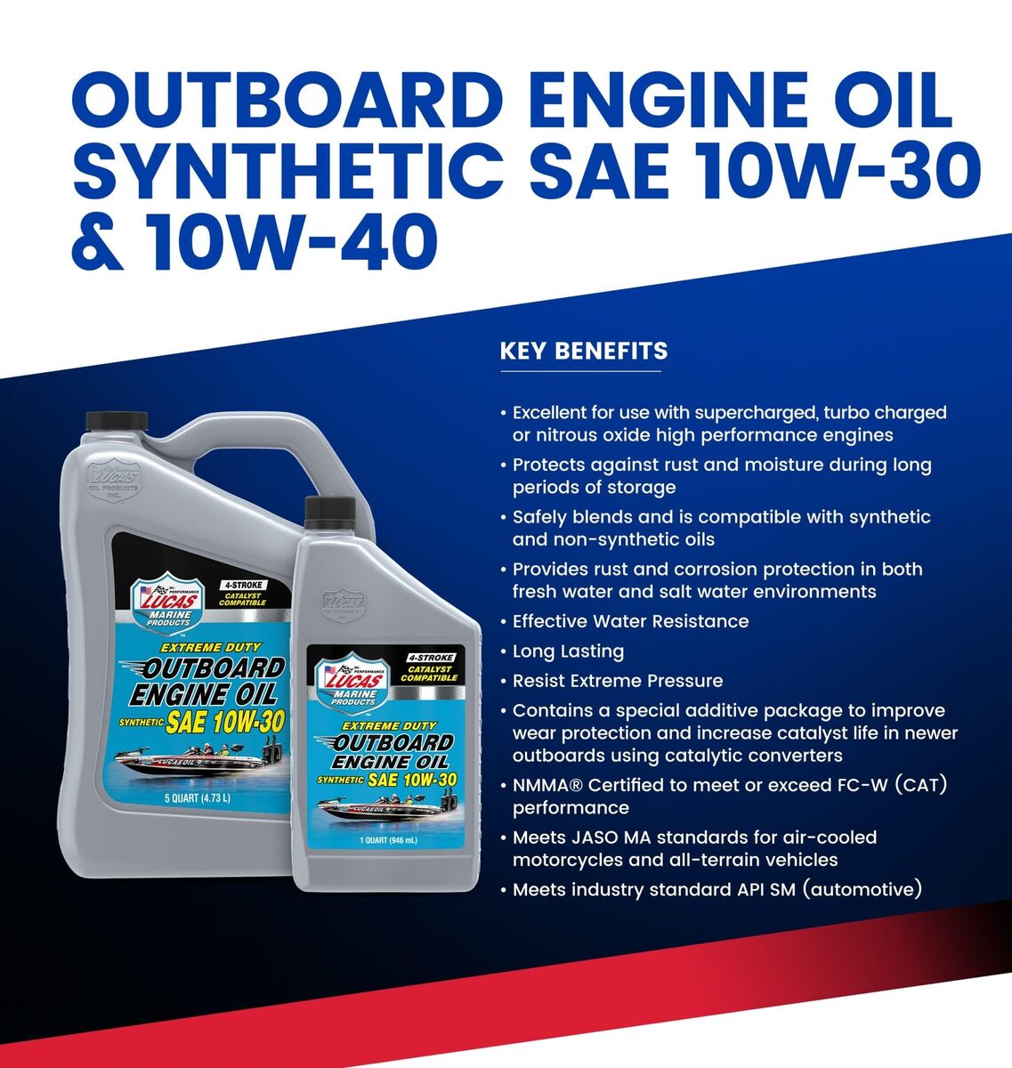 - Lucas Oil 10813 Synthetic SAE 10W-40 Extreme Duty Outboard Engine Oil - 5 Quarts