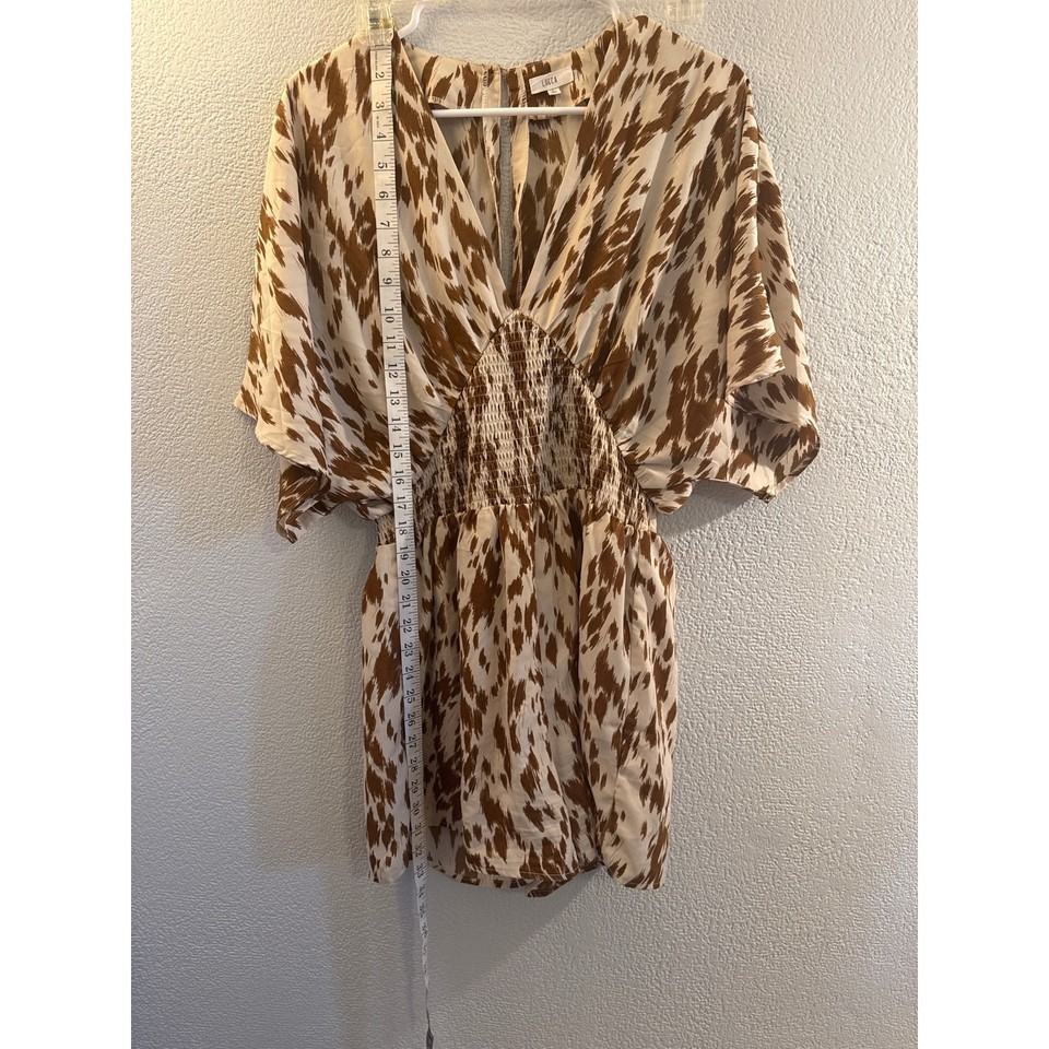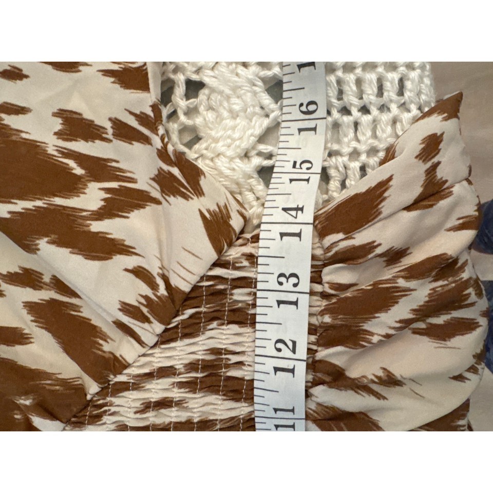 - Lucca Women’s Romper Size L Brown White Ikat Print Smocked Waist V-Neck
