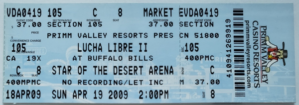 - Lucha Libre II Buffalo Bills Star of the Desert Arena Apr 19 2009 SouvenirTicket