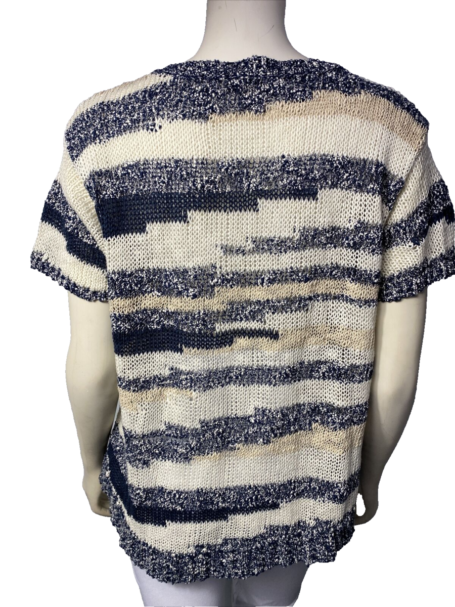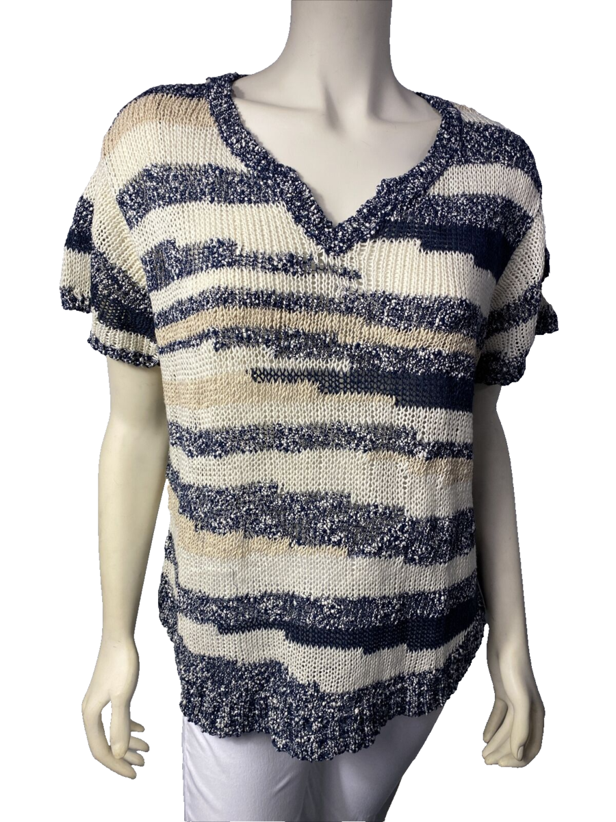 - Lucky Brand Blue and White Striped Short Sleeve Sweater Top, Women's Size 1X