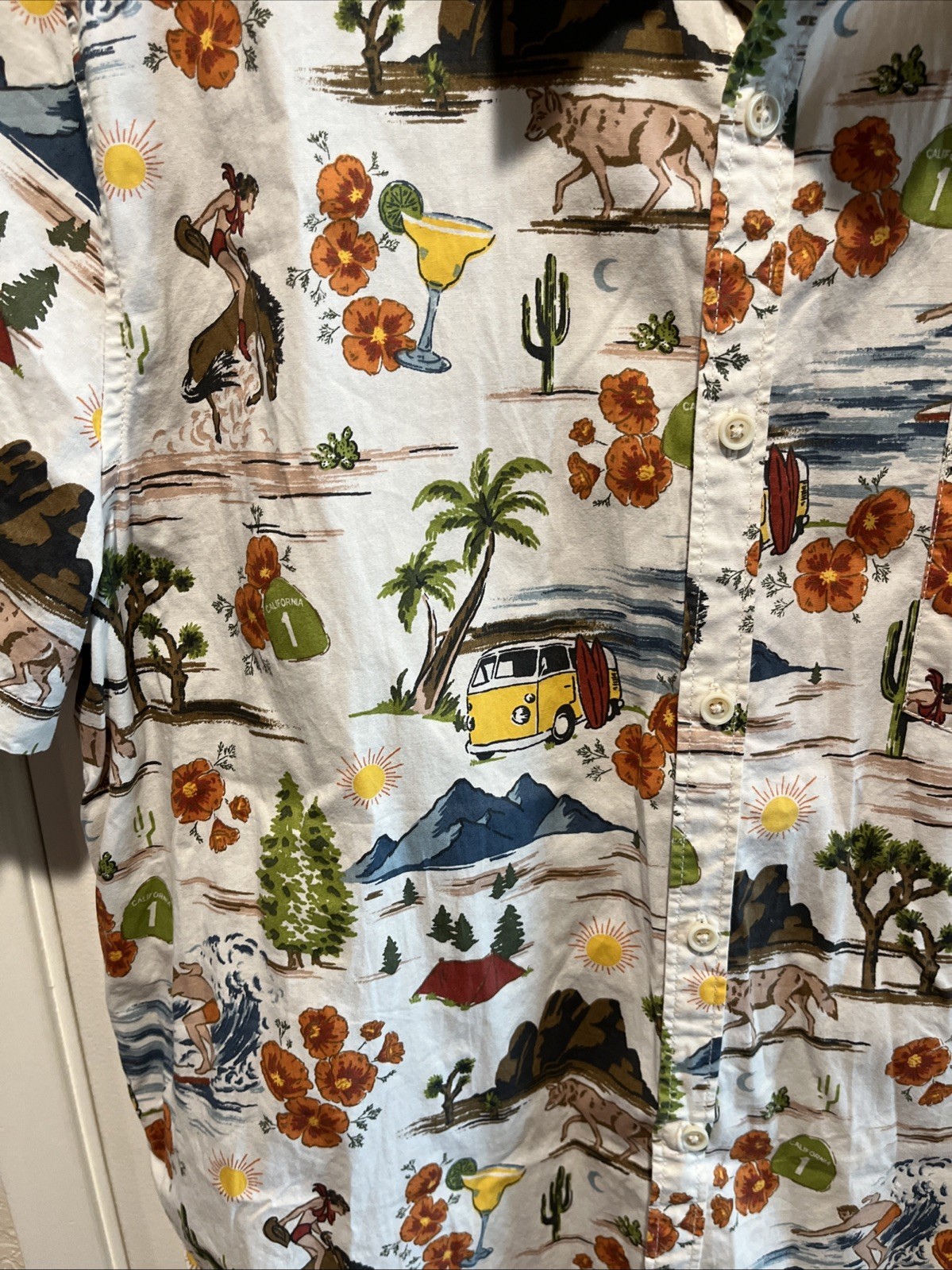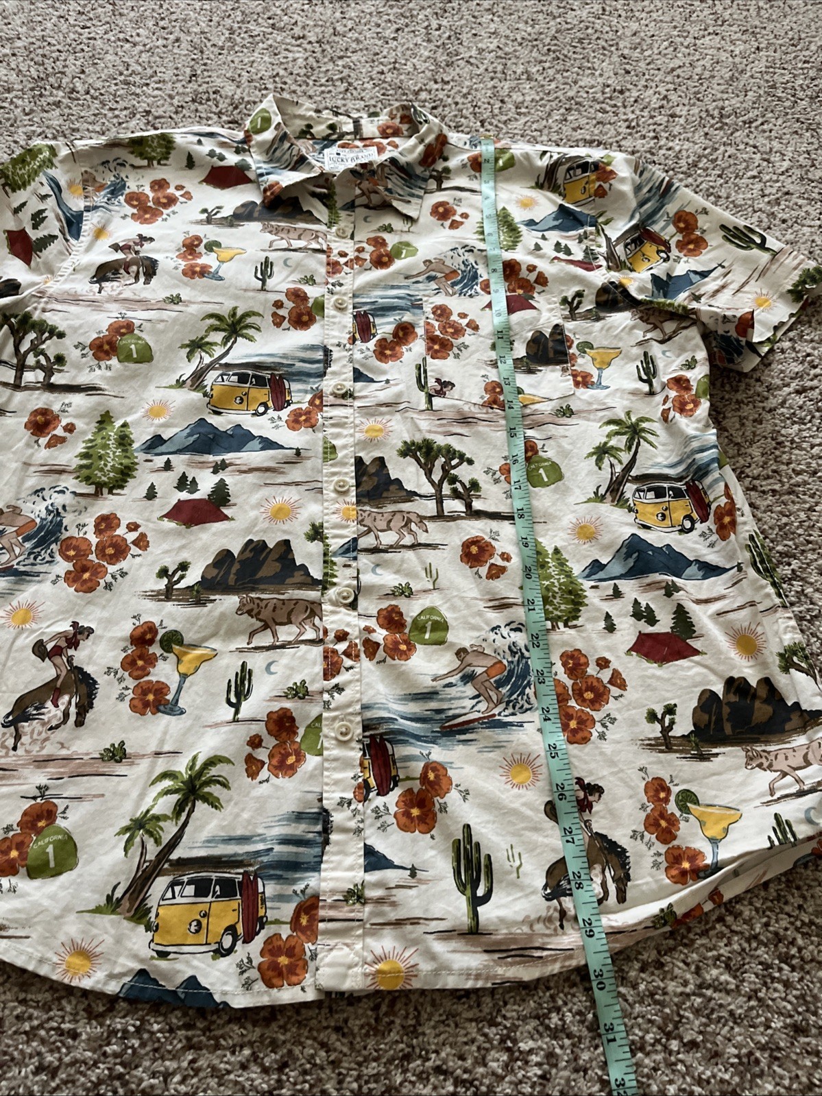 - Lucky Brand California HWY 1 Scenic Retro Surfing VW Bus Button Shirt Men’s XL