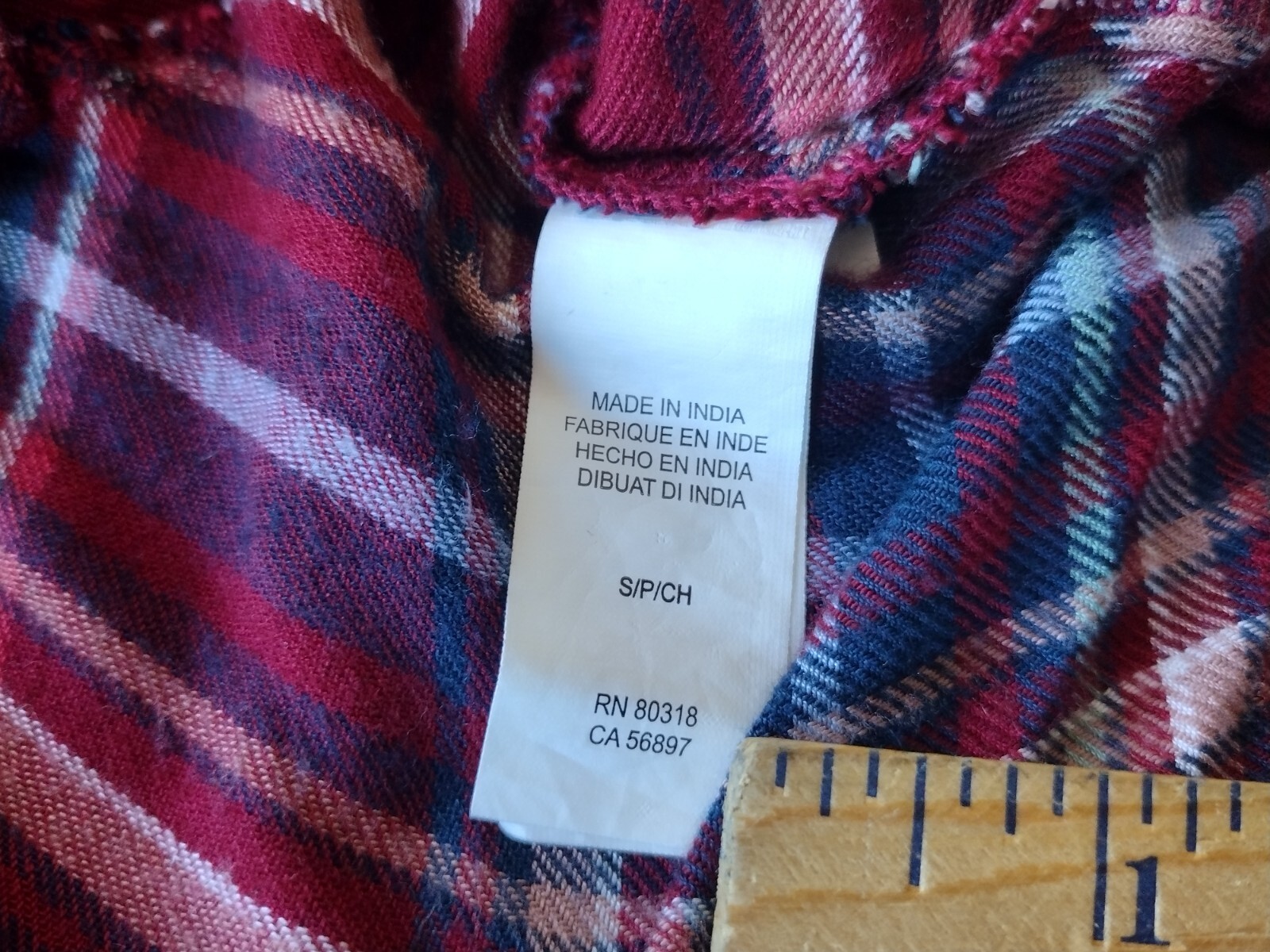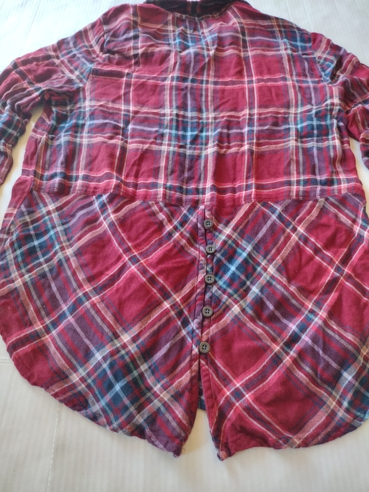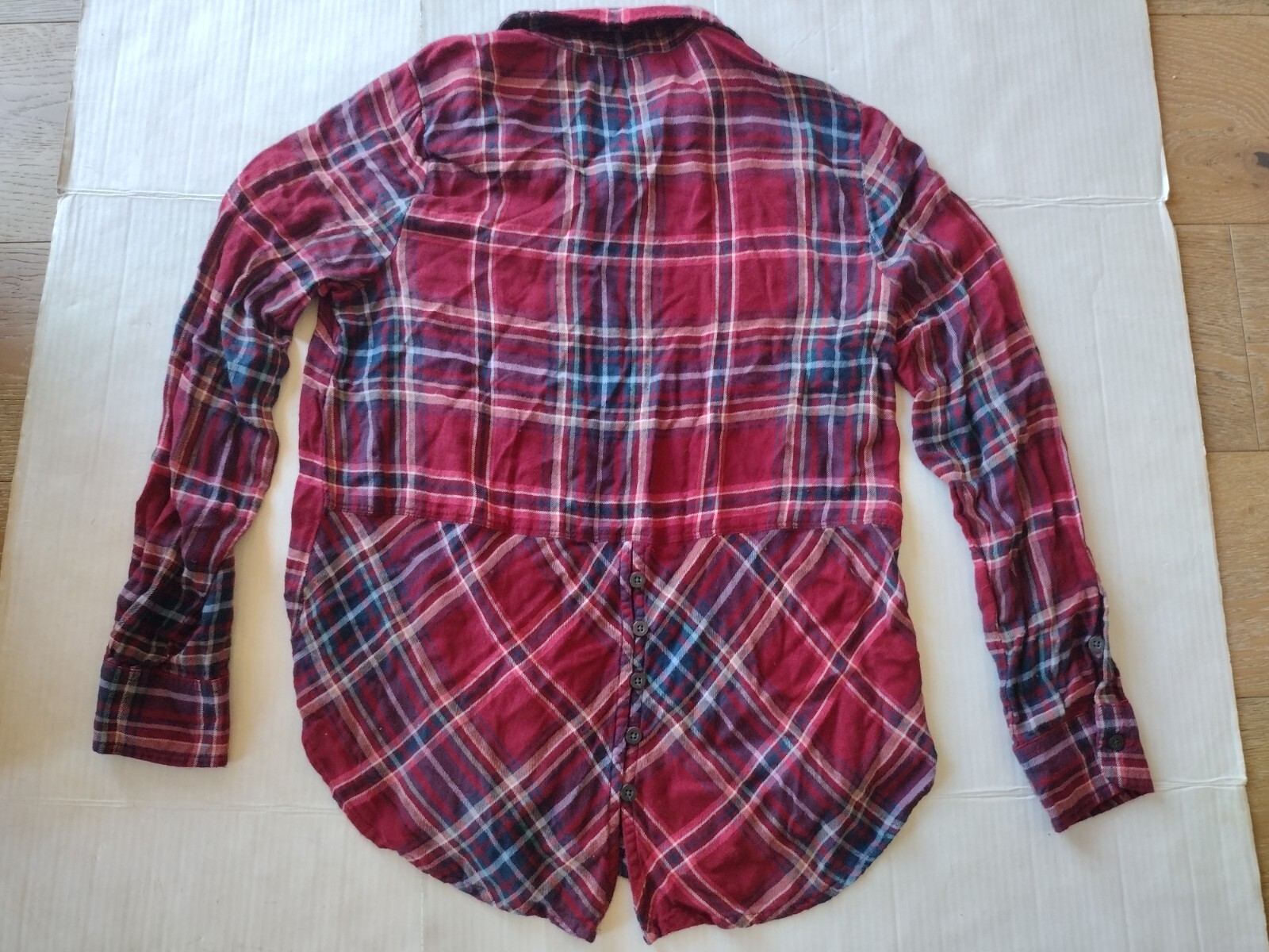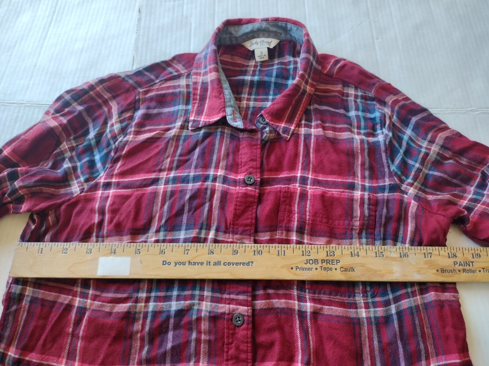 This is a women's Lucky Brand button-up shirt made of a viscose and modal knit fabric in a red plaid pattern. It features a collared neckline, long sleeves, and a regular fit. The shirt is machine washable and easy to care for, making it suitable for all seasons. It has a colorful and modern theme and is lightweight and not flannel. The shirt was made in India and is in excellent used condition in size S/P/CH. Please see photos for further details and measurements. Shipping within 2 days of payment. Thanks for shopping here.