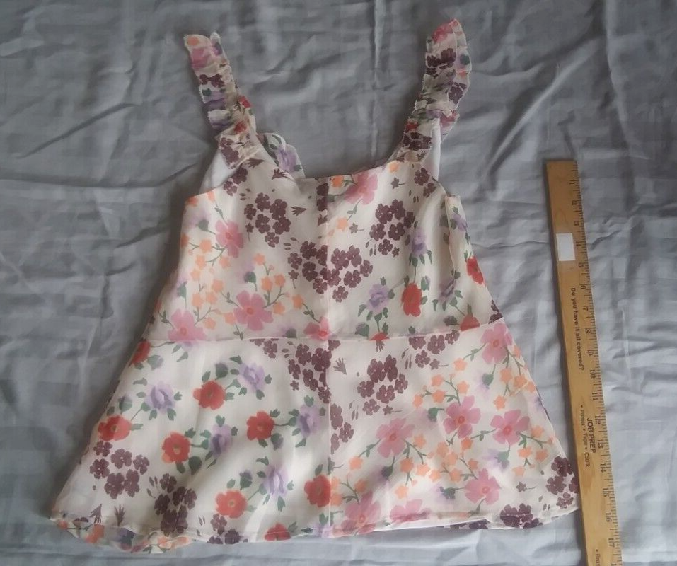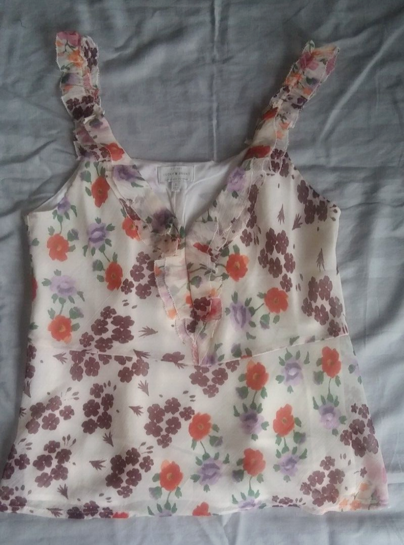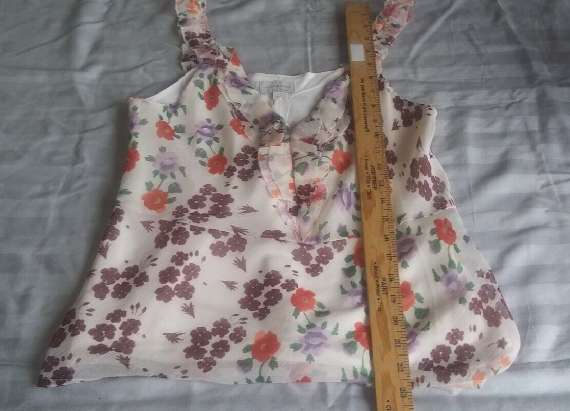 Lucky Brand Women's Top Size S Short Sleeve White Floral Ruffle V Neck Strap