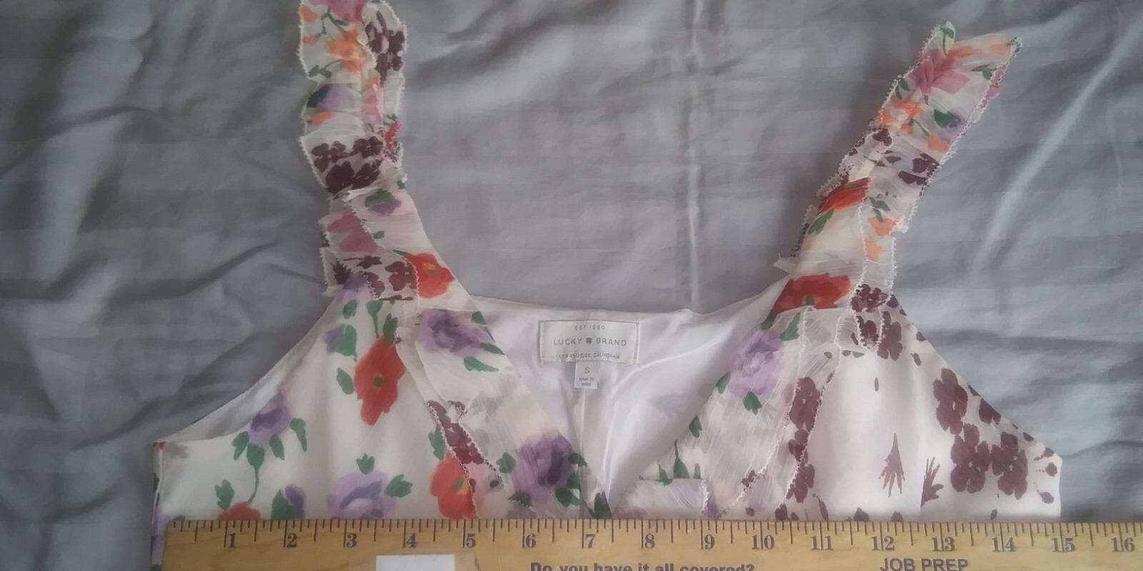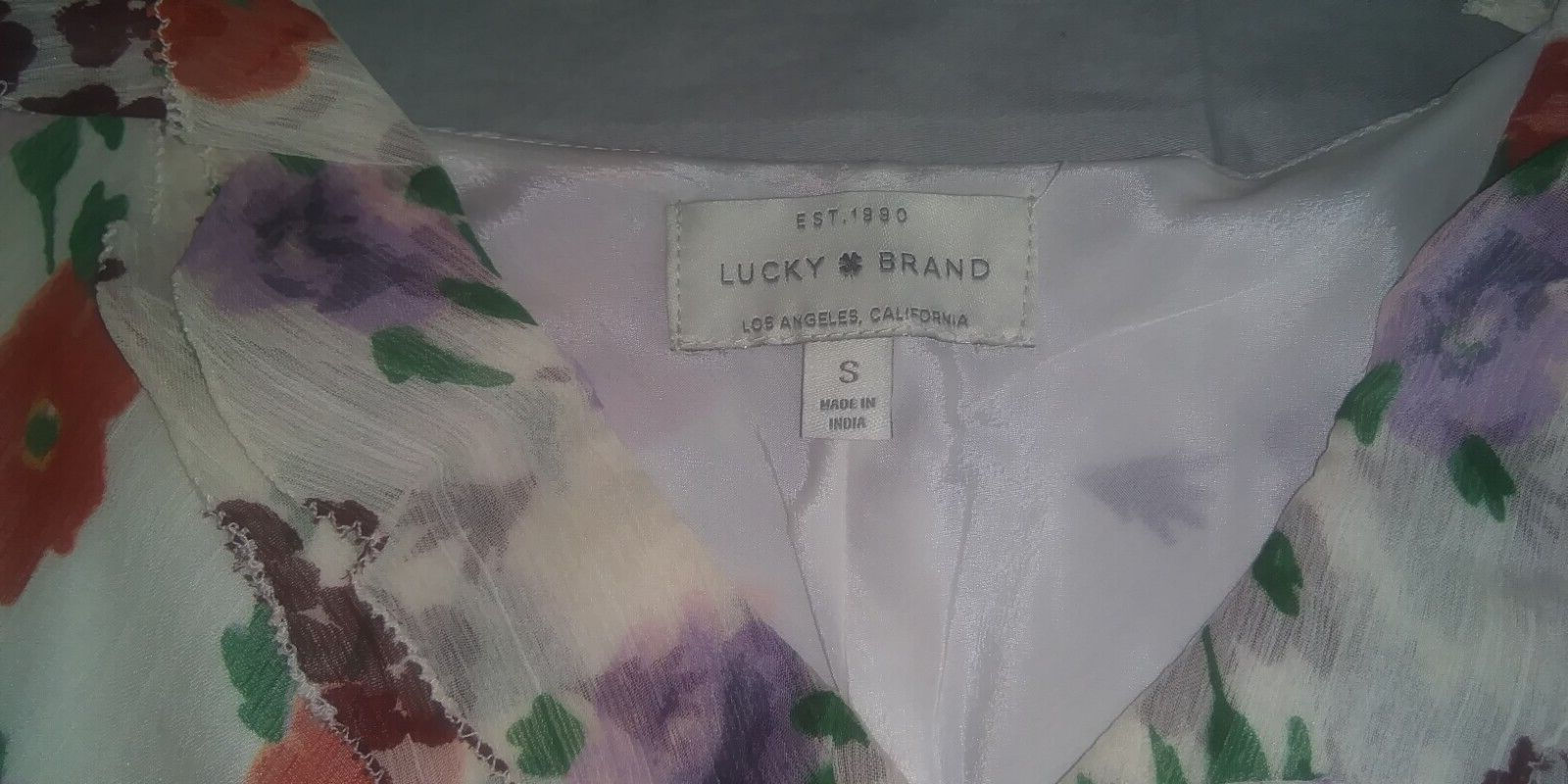 - Lucky Brand Women's Top Size S Short Sleeve White Floral Ruffle V Neck Strap