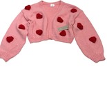 - Luna Sweater Womens M Pink Open Knit 3D Floral Oversized Cropped Cardigan Y2K