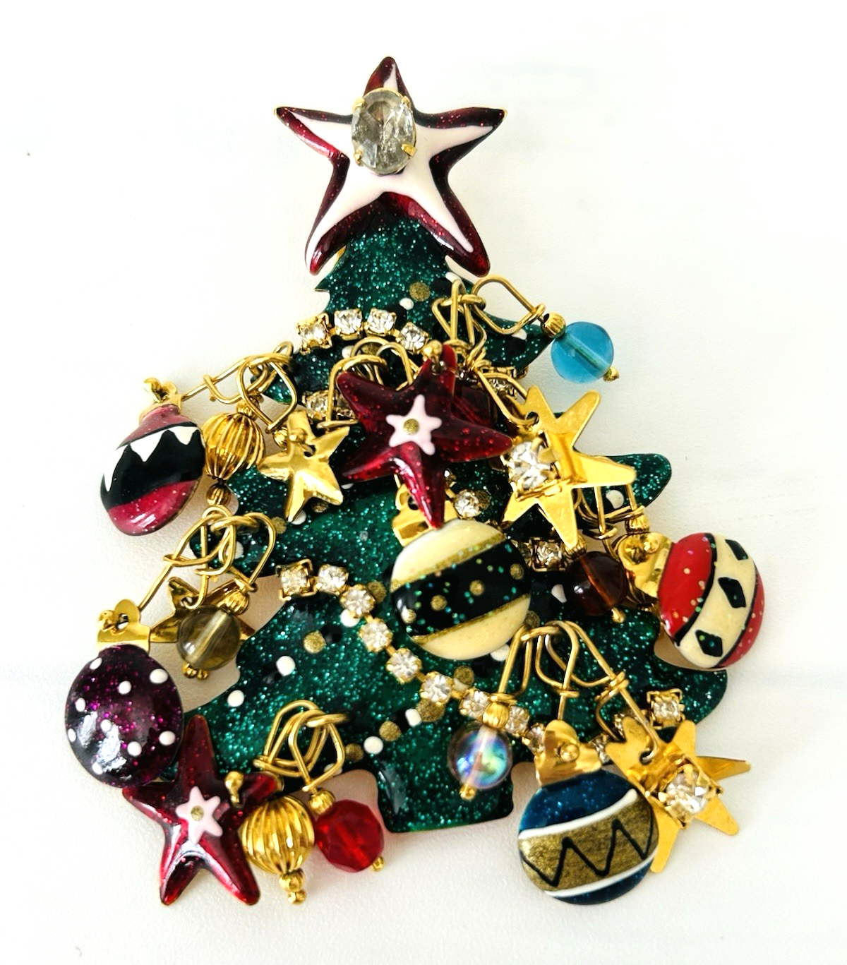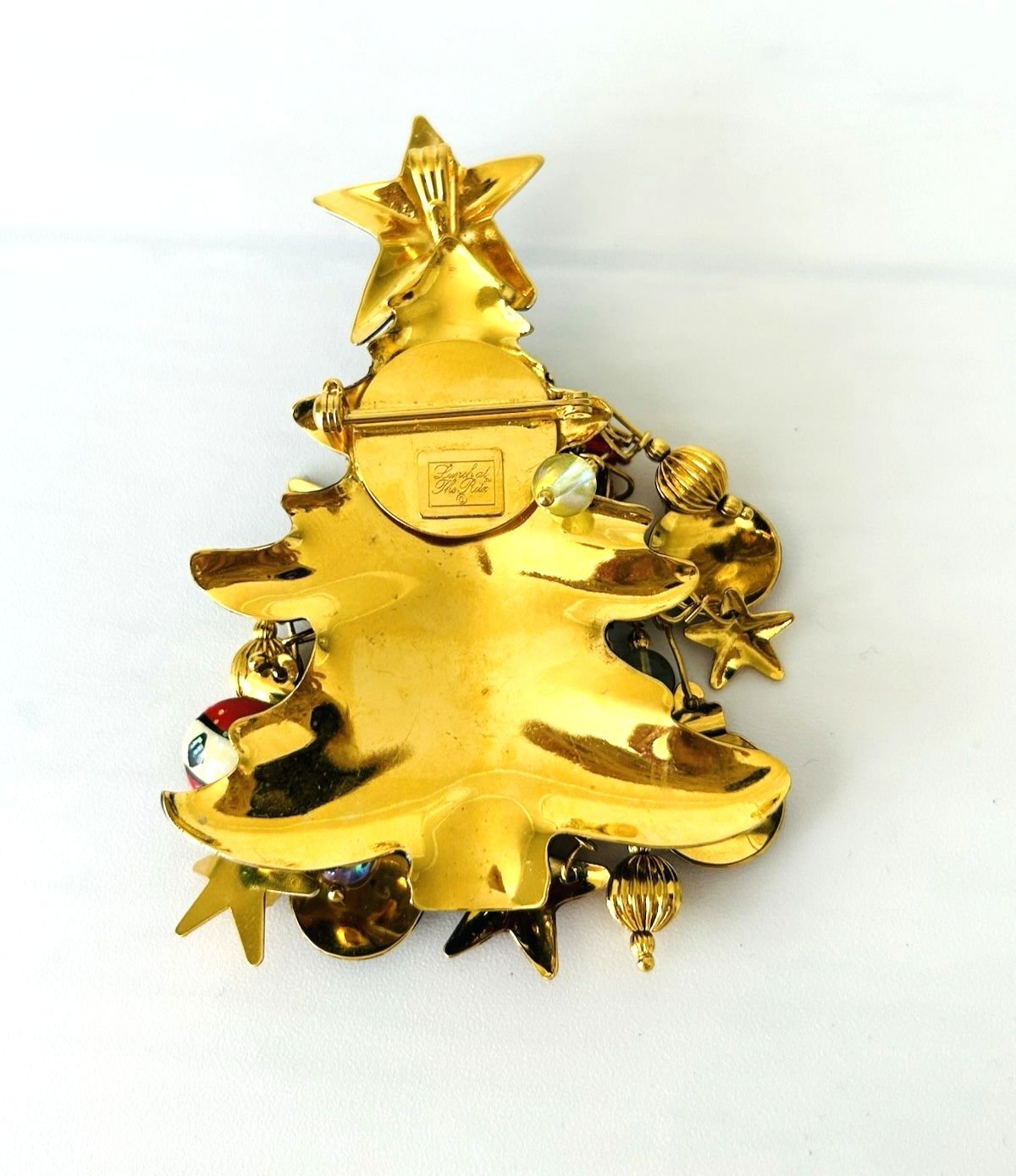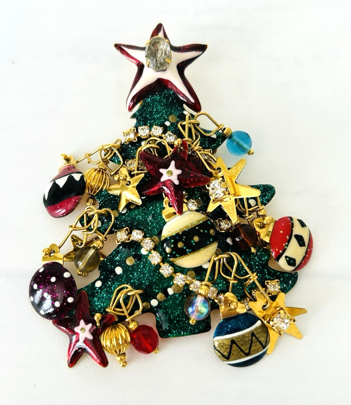 - Lunch At The Ritz LATR Christmas Tree Brooch Enamel Rhinestone Pin Pendant