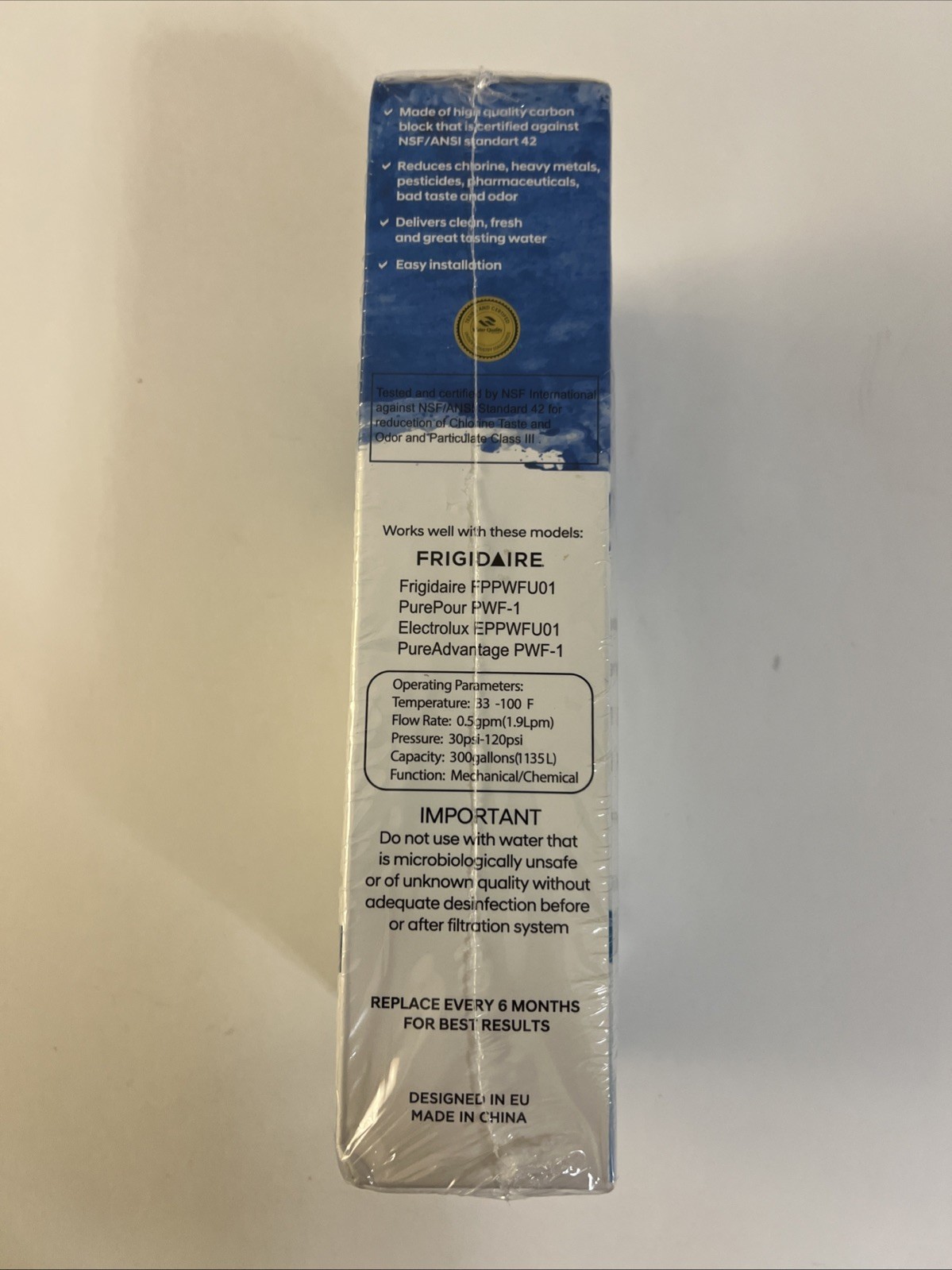 The LuxPure Water Filters are designed as a replacement for Frigidaire Puresource PWF-1 EPPWFU01 FPPWFU01 models. Made of white plastic with a sediment filtration method, these filters are suitable for household use. The pack includes 2 units, each with a 1-stage filtration system to remove sediment contaminants. With dimensions of 14 inches in depth and 4 inches in height, these LuxPure water filters offer a convenient and effective solution for purifying your water.
