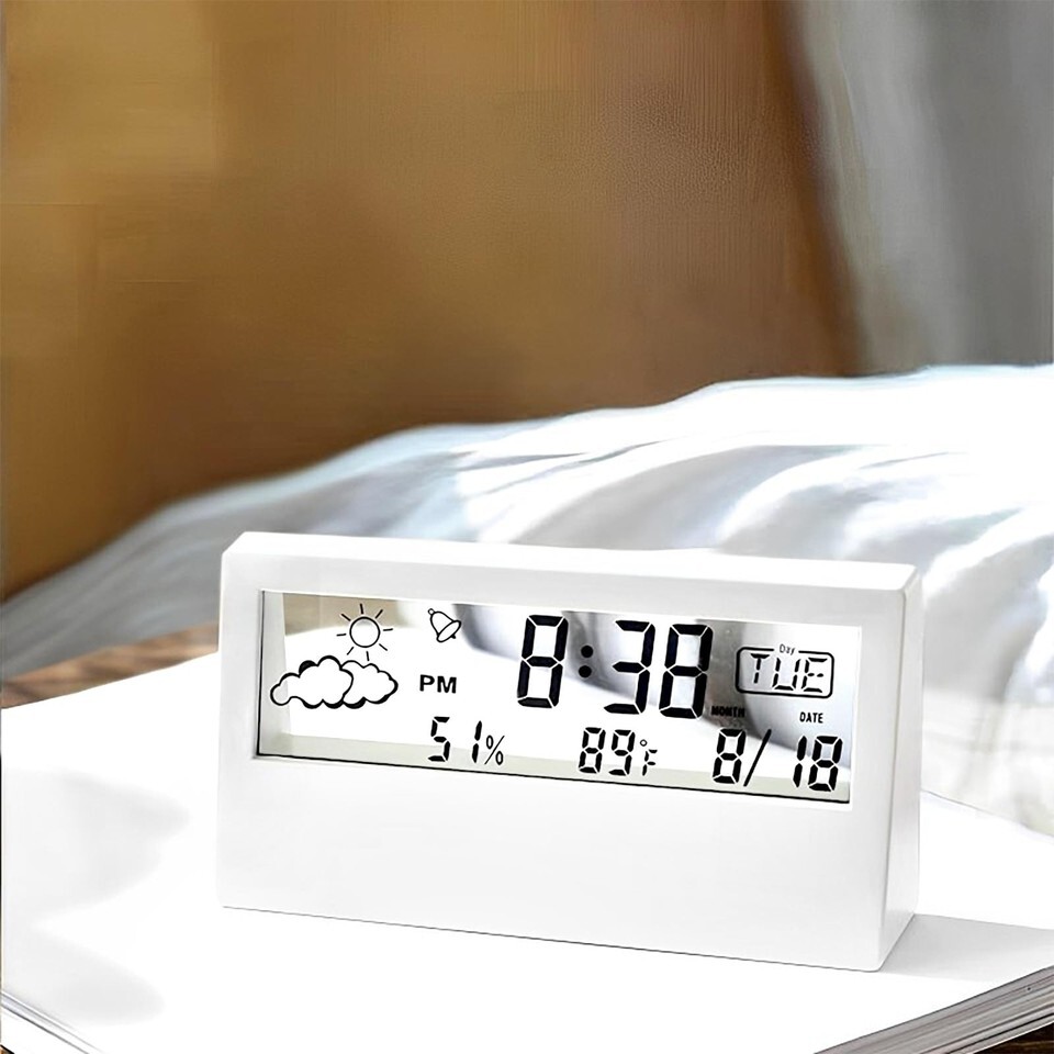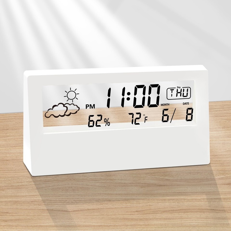 - LuxSoramia Digital Alarm Clock Transparent Modern Design White Temp Humidity