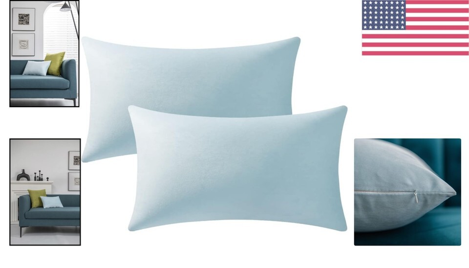 - Luxurious Solid Velvet Decorative Pillow Covers, 20" x 12" - 2 Pack in Baby Blue