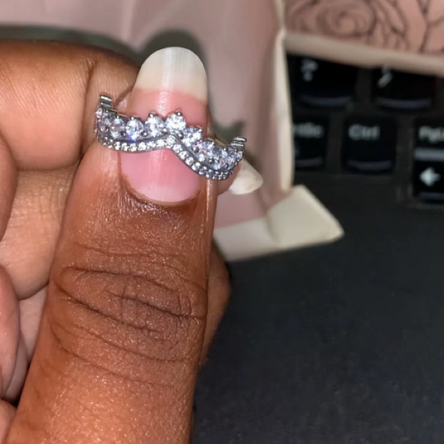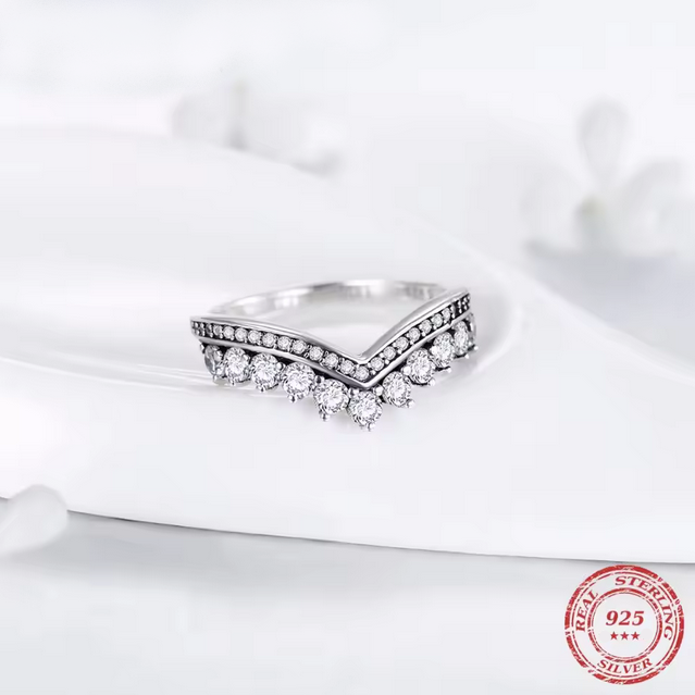 - Luxury 925 Sterling Silver Dazzling A5 Zirconia V-Style Crown Ring (Size 5-9)