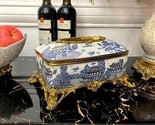 Product description: Elevate your home decor with this stunning blue and white porcelain tissue box from Decora. Measuring 10.2 x 6.9 x 5.3 inches, this luxury piece features intricate hand-cast brass accents and sits elegantly on a decorative base, adding sophistication to any room. The smooth, high-quality porcelain construction ensures durability and easy maintenance, while the ornate brass footed frame provides both stability and opulence. Perfect for living rooms, dining tables, or entryways, this versatile tissue holder complements classical, modern, and eclectic interior styles. The spacious design accommodates standard tissue boxes or napkin packs, seamlessly blending functionality with refined aesthetics. Make a statement in your home with this exquisite decorative piece that serves as both a practical accessory and an artistic conversation starter.