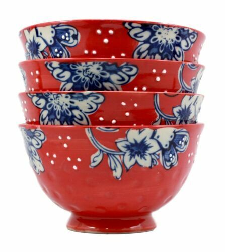 Ebros Luxury Ottoman Style Textured Dining Bowls Set of 4 Iznik Ming Old World Bowl