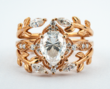 - Luxury Pear Shape Moissanite with Leaf Texture Ring Set