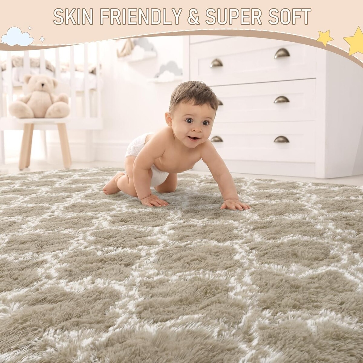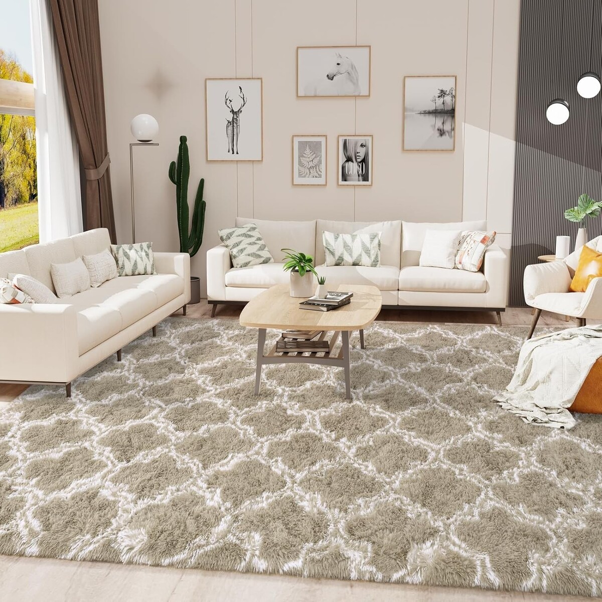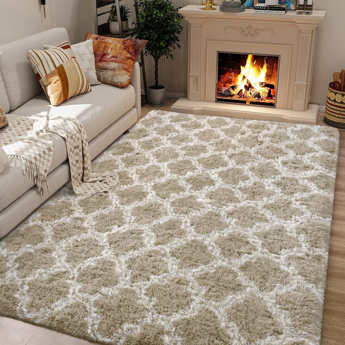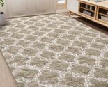 - Luxury Shag Area Rug 5 x 8 Feet Geometric Plush Fluffy Rug Beige White Living