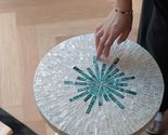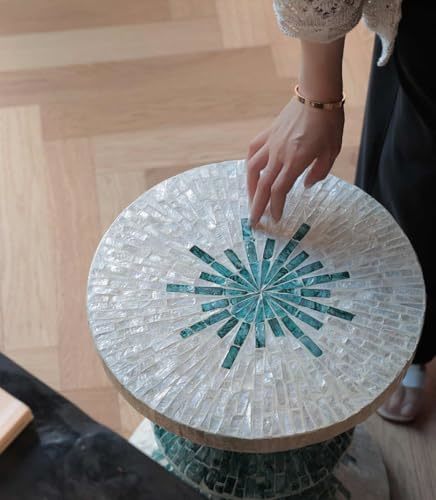 Luxury Shell Mosaic Garden Stool, Turquoise Green Mother of Pearl Ceramic Side T