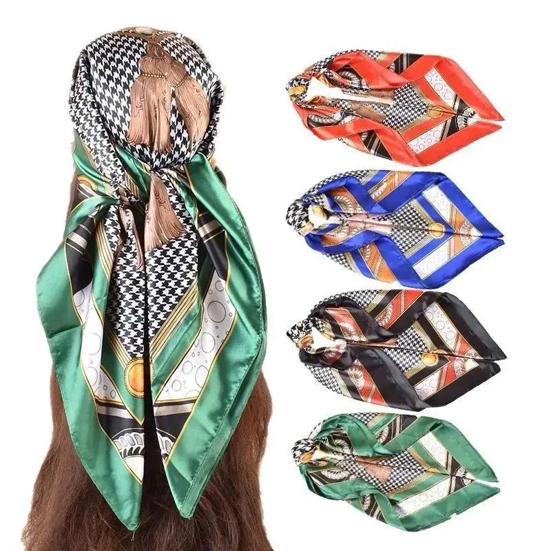- Luxury silk 4pcs square scarf women vintage Bandana wrap headscarf