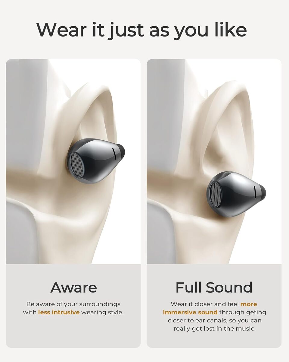 Enjoy audio without blocking your ears. Stay aware of traffic, conversations, and your environment.