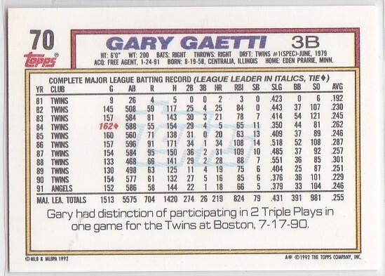 - M) 1992 Topps Baseball Trading Card - Gary Gaetti #70
