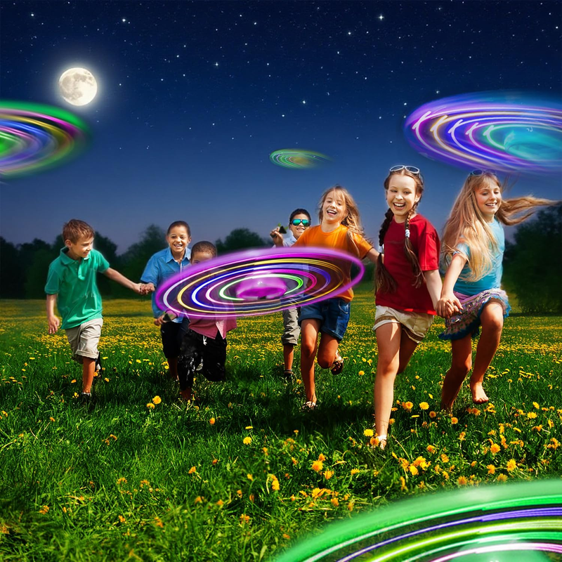 LIGHT-UP FEATURE: Each flying disc is equipped with bright LED lights that create stunning light trails when thrown, making them perfect for evening play.