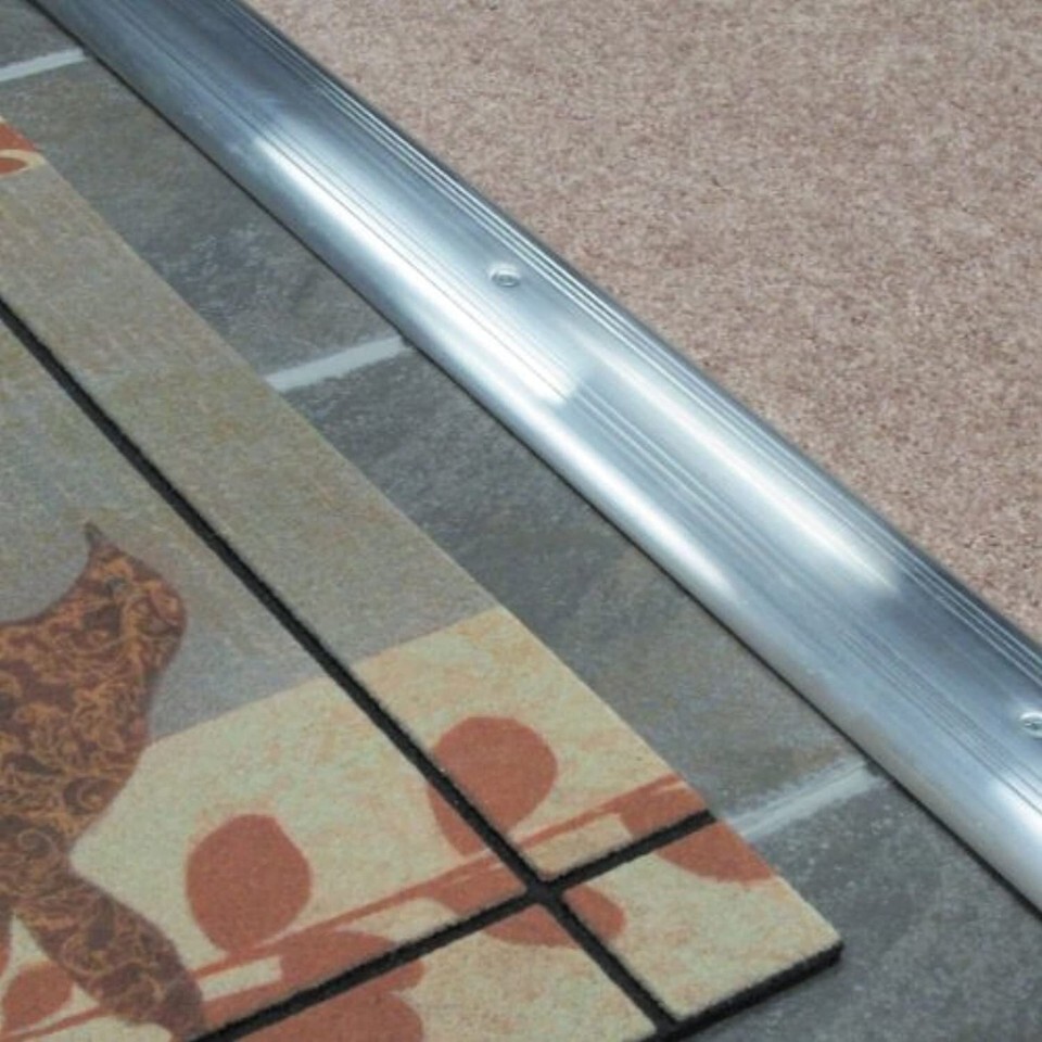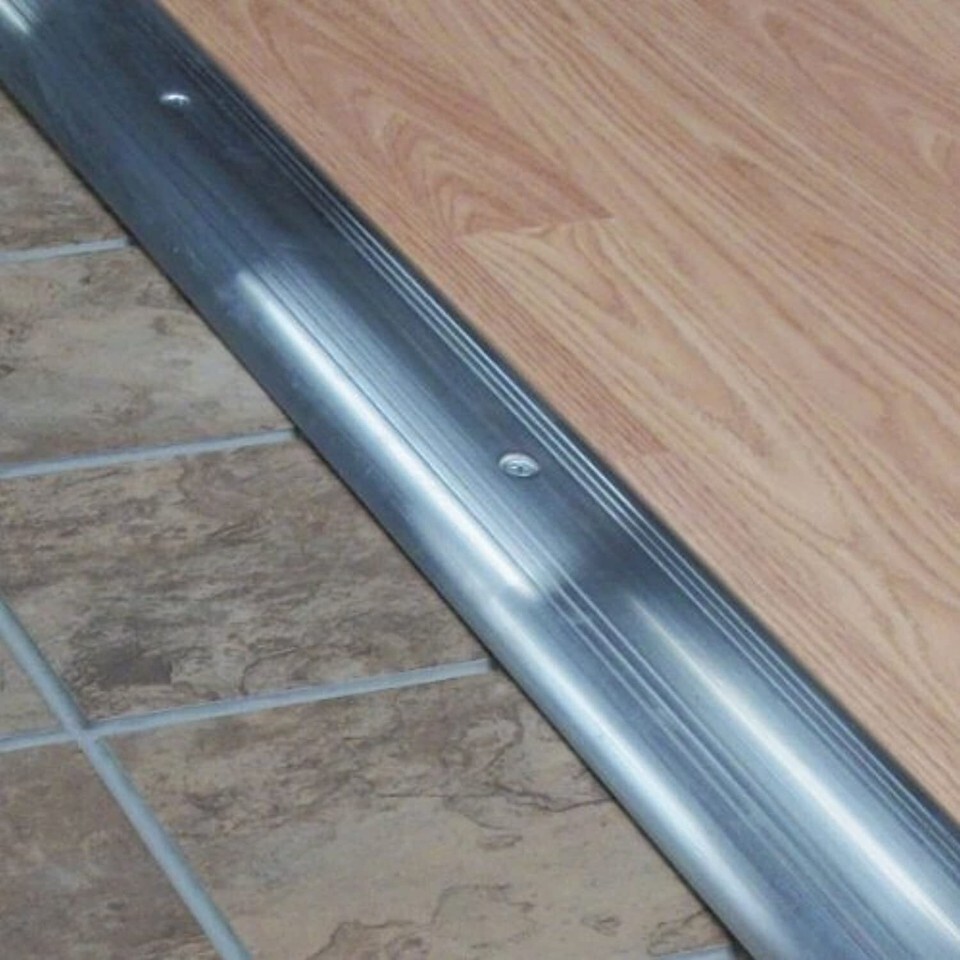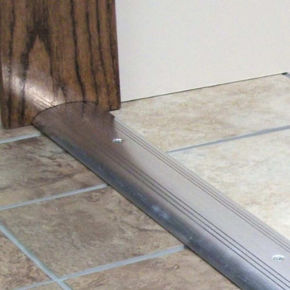 Product Description M-D Saddle Threshold, Low Dome Top, M-D, 3-1/2 in Width, 36 in Length, 5/8 in Height, Aluminum, Silver, Resists: Moisture, Rot, Termite, For Door Sweep or a Door Bottom. Exterior extruded aluminum threshold with vinyl caulking strips under legs to form a tight seal between the floor and threshold. Includes screws. 5/8" Height. From the Manufacturer Extruded aluminum threshold with vinyl caulking strips under legs.
