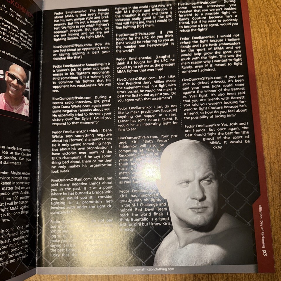 - M1 Global Affliction Official Event Program MMA UFC RIZIN Rare Fedor Emelianenko