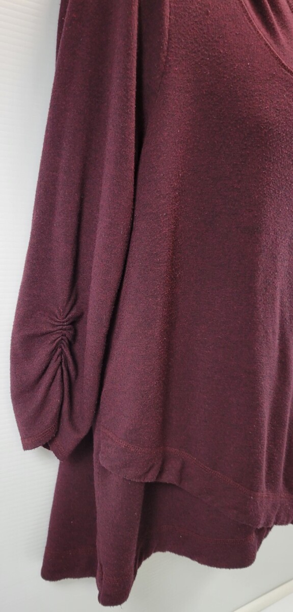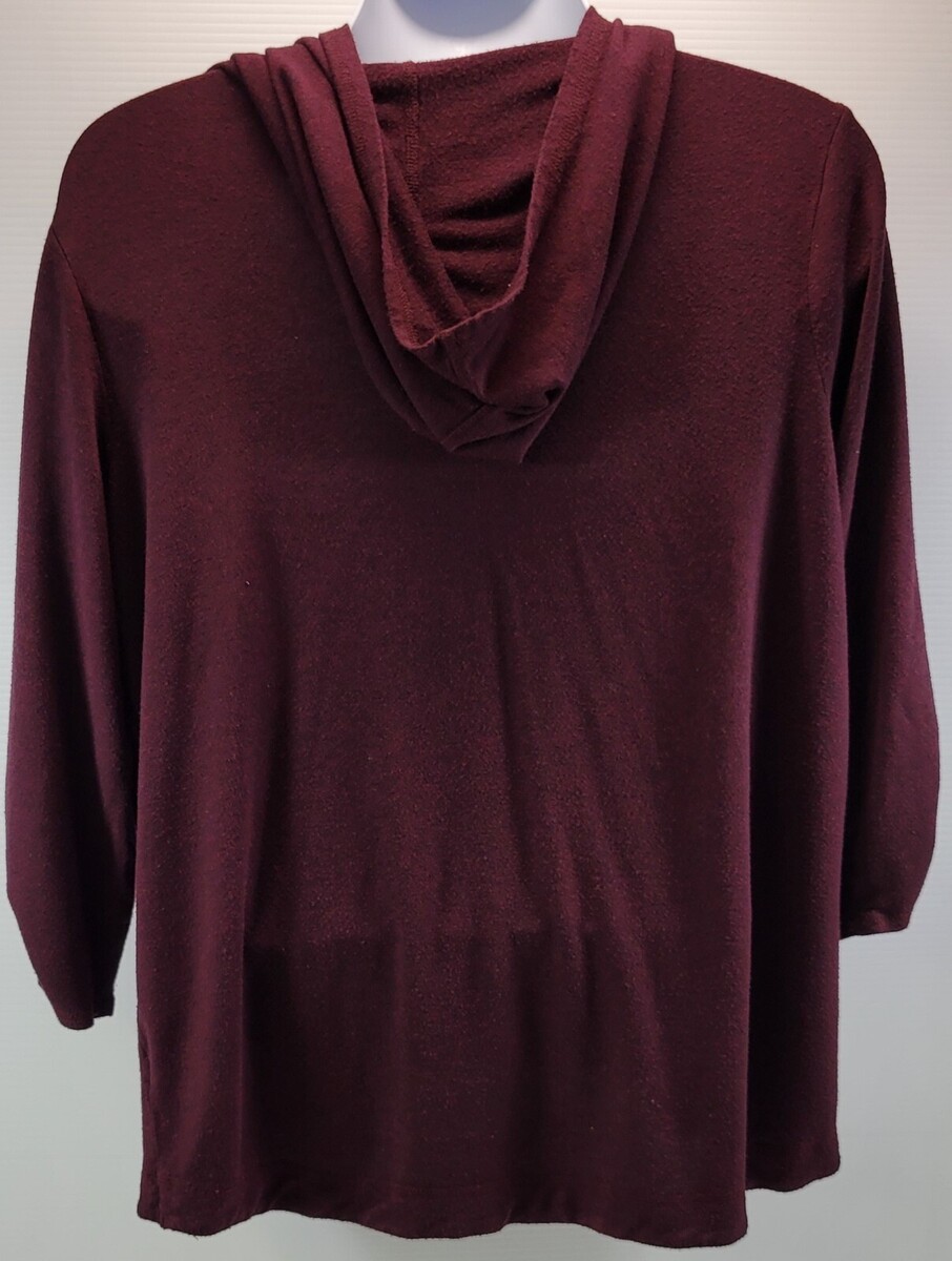MA) Dressbarn Sunday Woman 1X Hooded Pullover Sweatshirt Top Burgundy Purple