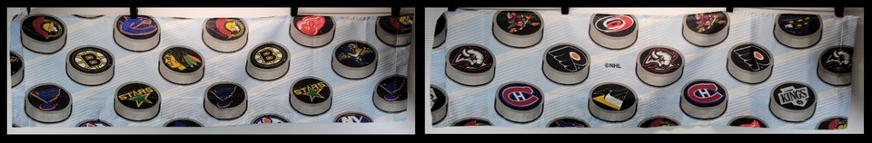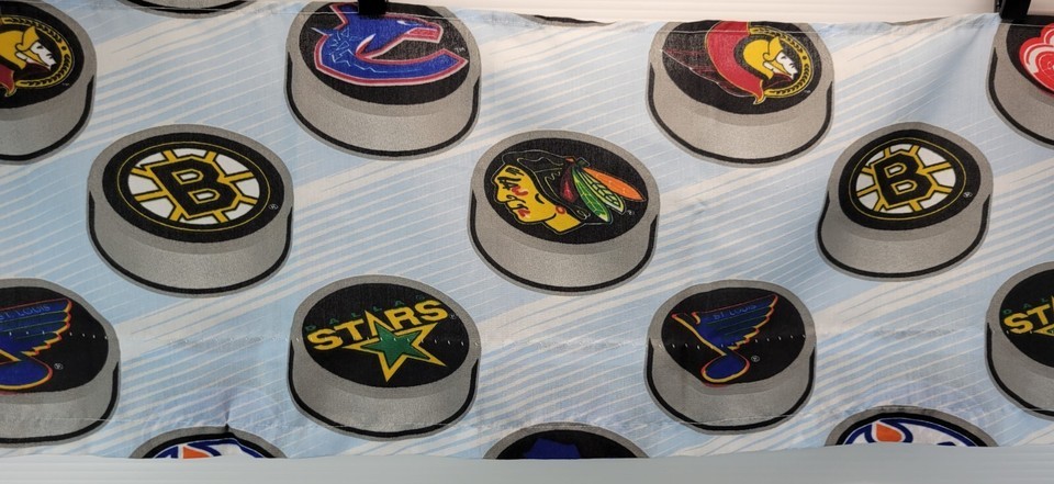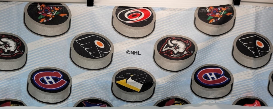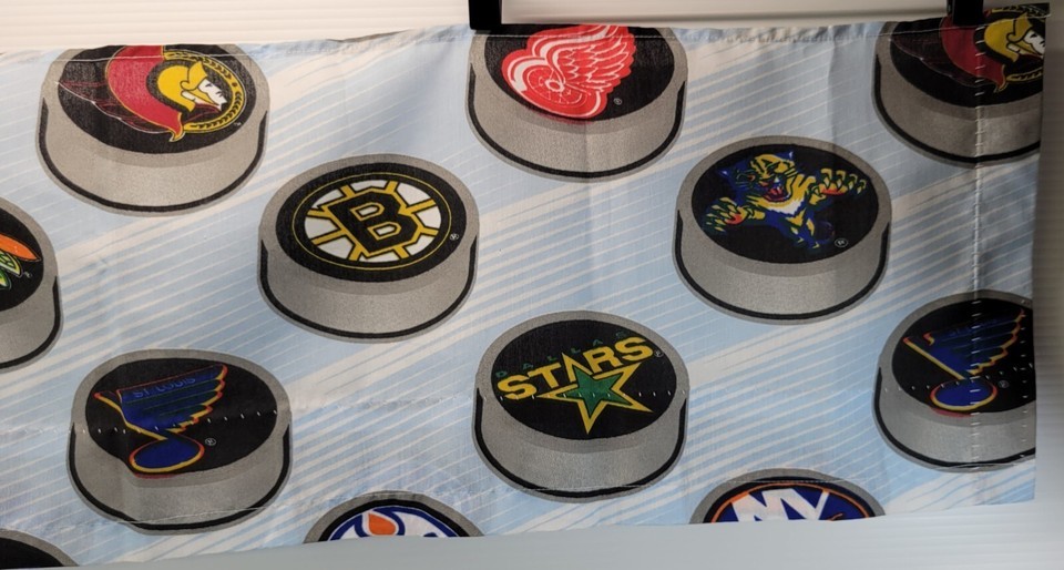 - MA) Vintage 2-piece NHL Hockey Puck Window Valance Curtains 40" x 11"
