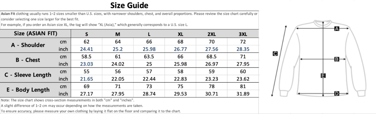 Size : S, M, L, XL, 2XL, 3XL / Over Fit (ASIAN Size)