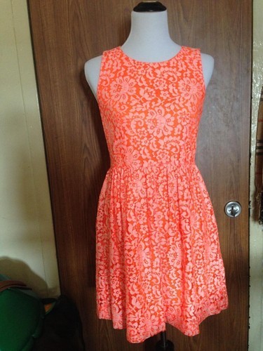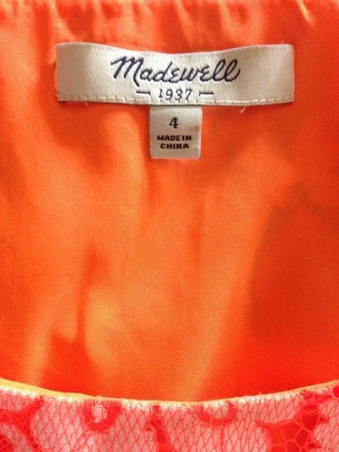 - MADEWELL Neon Orange Lace Floral Design Cotton Blend Sleeveless Dress SZ 4