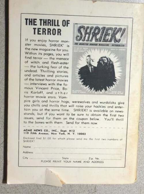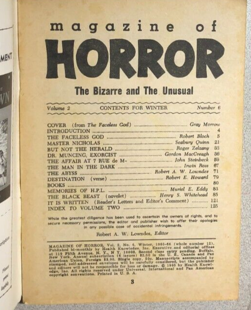 MAGAZINE OF HORROR #12 digest magazine REH Zelazny Quinn Bloch Steinbeck 1965