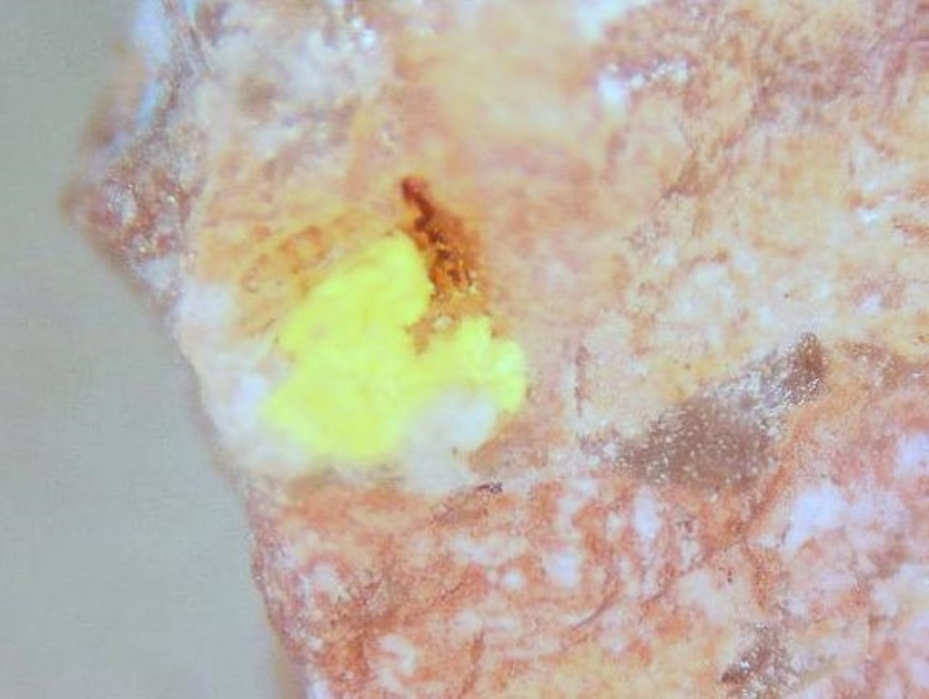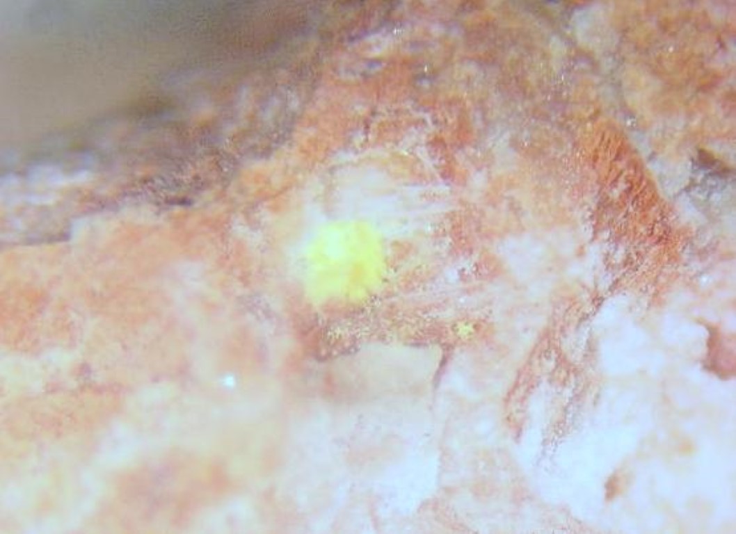 Small yellow pods of margaritasite in matrix from it's type and only known locality. Margaritasite is a rare cesium and uranium bearing vanadate.