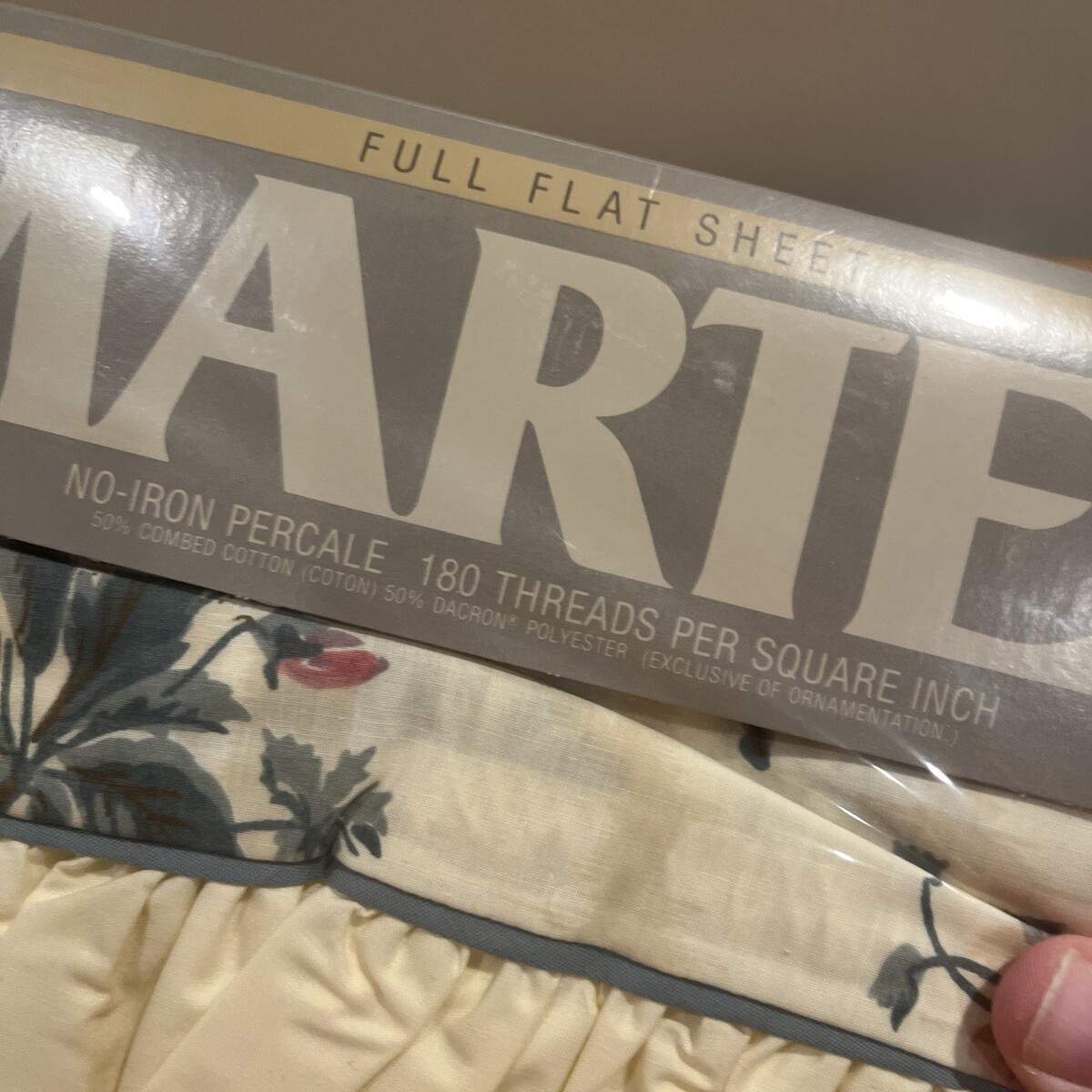 - MARTEX Full Flat Sheet Cream Floral Ruffle No-Iron Percale Cotton Blend Made USA